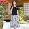 Mãe Verão Moda Saia Temperamento Nova Meia-idade das Mulheres de Manga Curta T-shirt Saia de Duas Peças Terno Saia