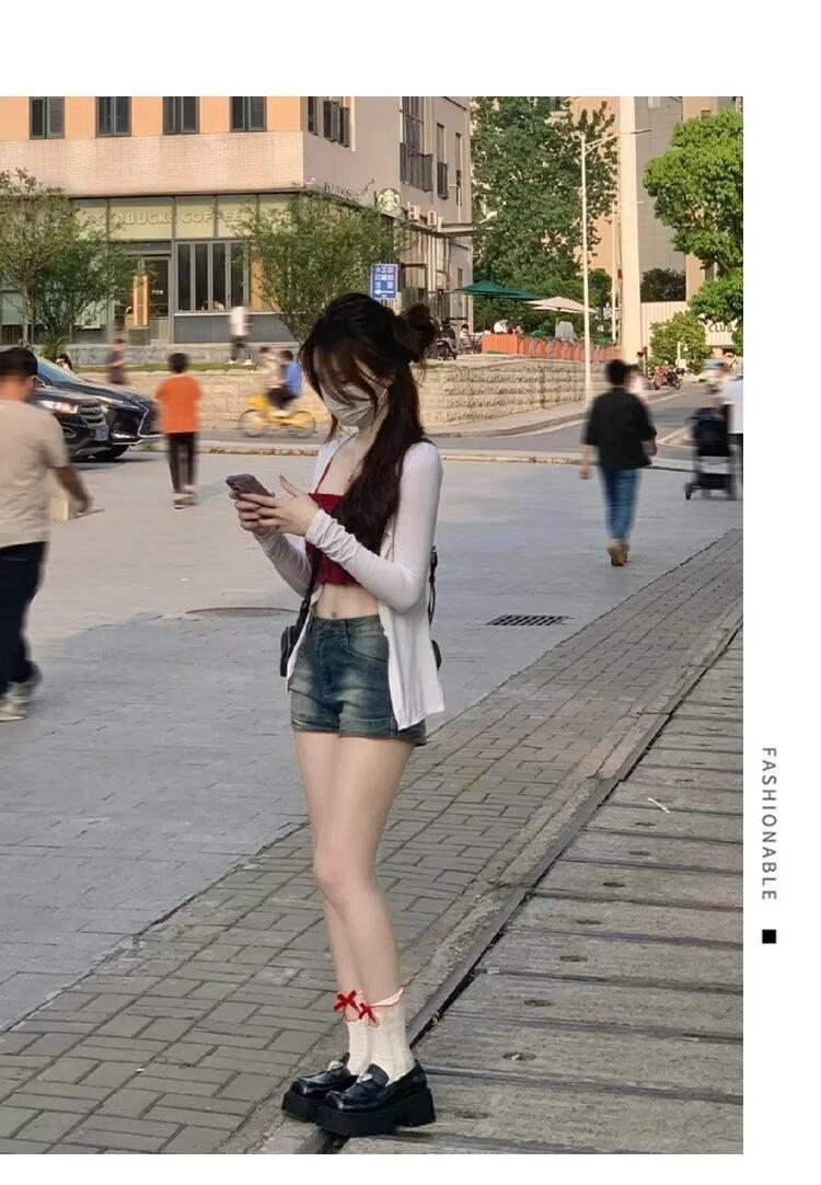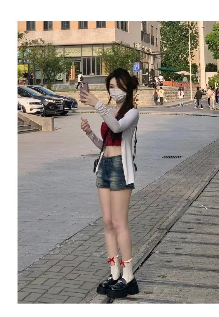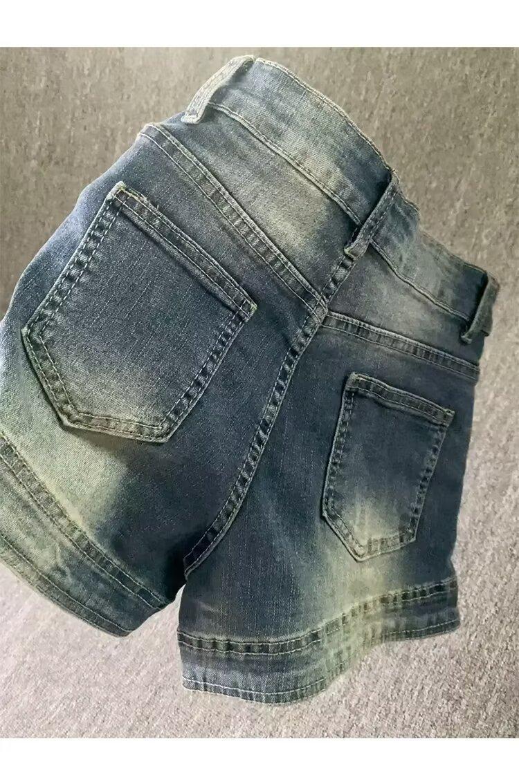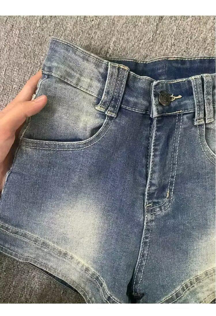 Shorts Jeans Retrô Americano Doce e Quente para Meninas Verão 2024 Novo Estilo Quente Cintura Alta Pequeno Linha A Hot Pants