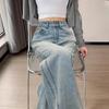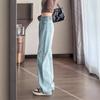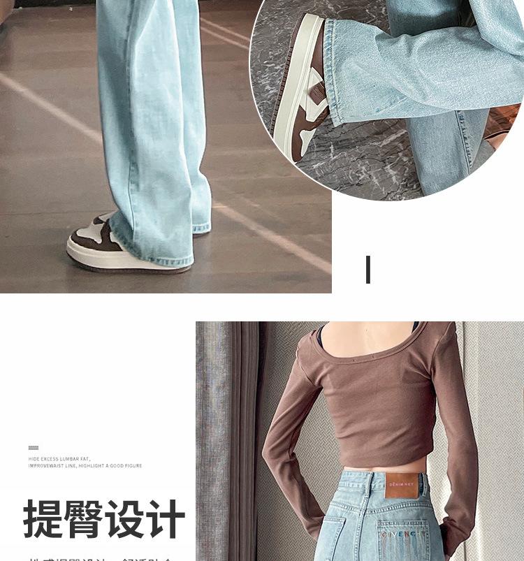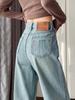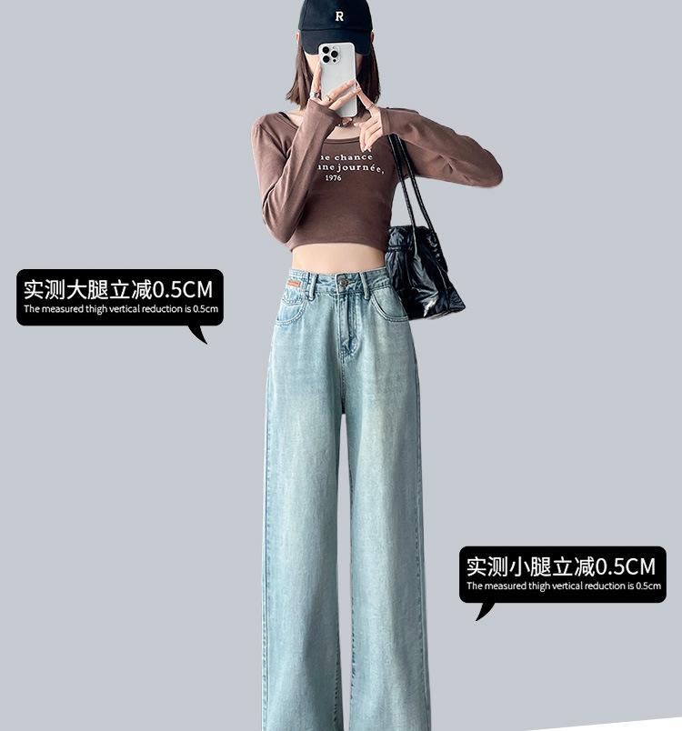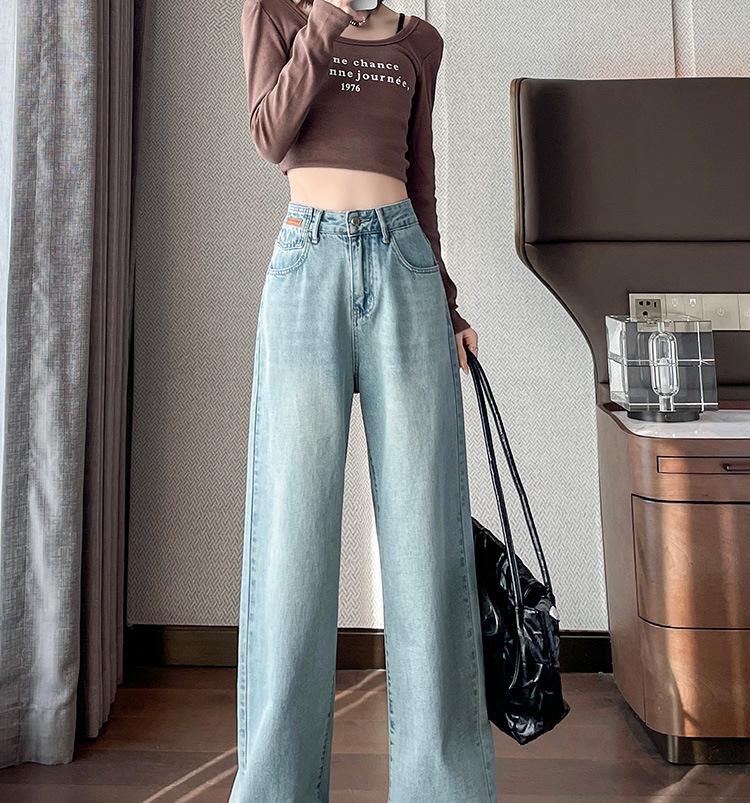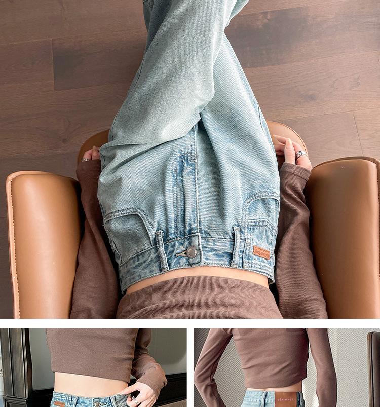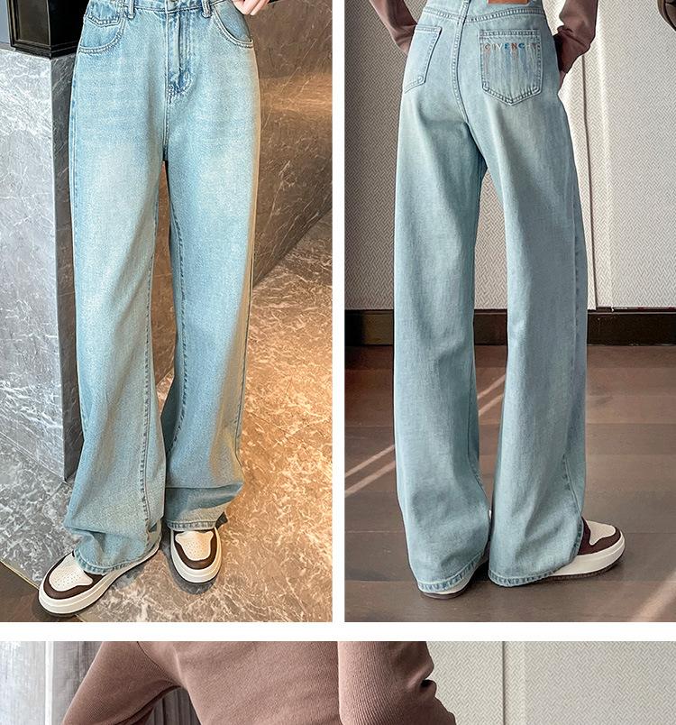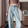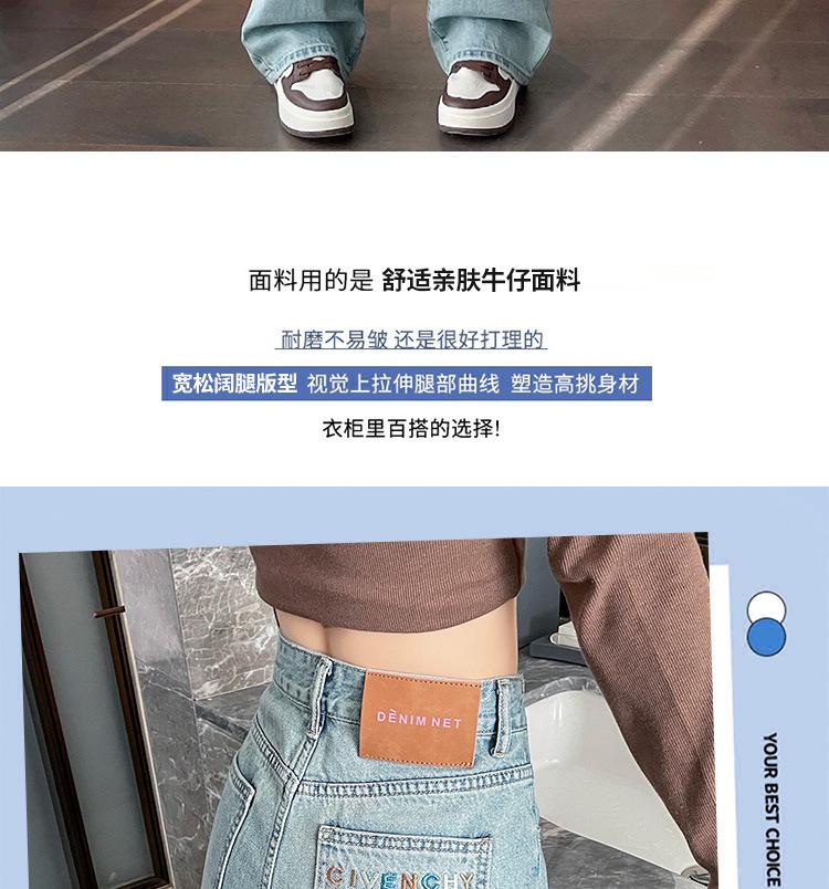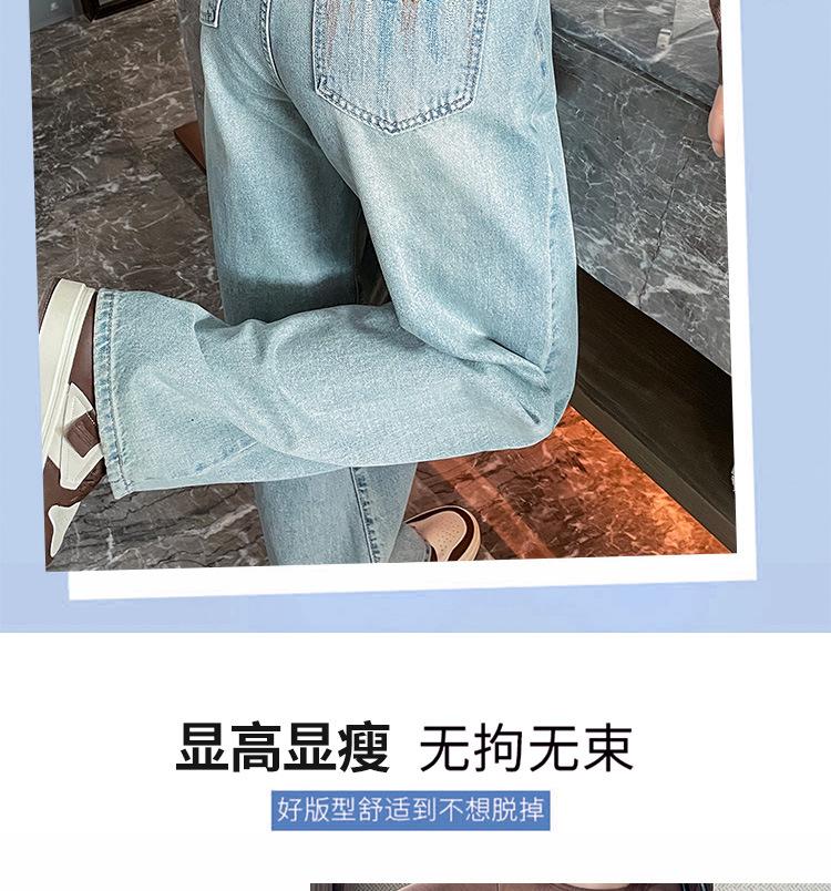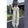 Jeans de cor clara para mulheres 2024 nova primavera e outono cintura alta solta emagrecimento bordado curto estreito calças largas