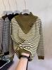 Otoño e Invierno Falso Dos Piezas Explosión Cuello Alto Suéter Rayado de Punto para Mujer Jersey Interior Delgado Suave Cera Camiseta Base Top