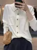Outono Worsted Lã Malhas Mulheres All-match Moda Polo Collar Cardigan Manga comprida Cor Sólida Fivela Cinto Jaqueta