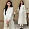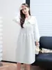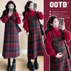 Outono vestido de maternidade novas mulheres grávidas vestido de base casaco de duas peças plus size outono e inverno vestido engrossado
