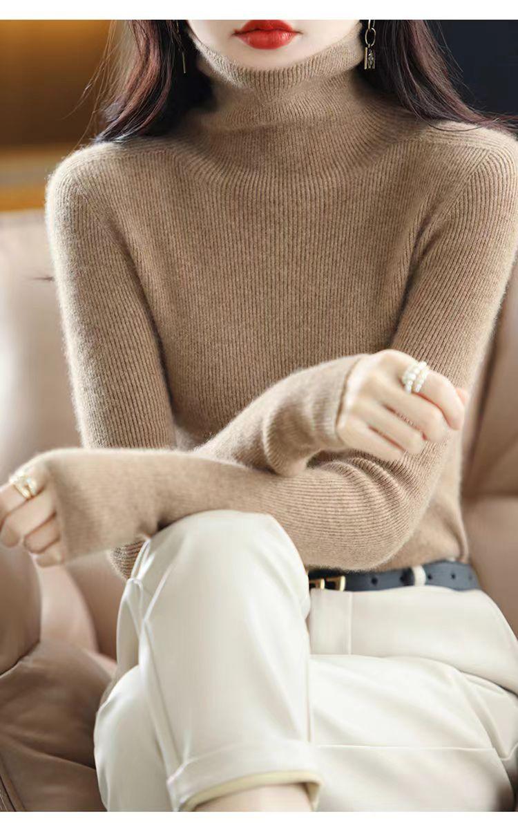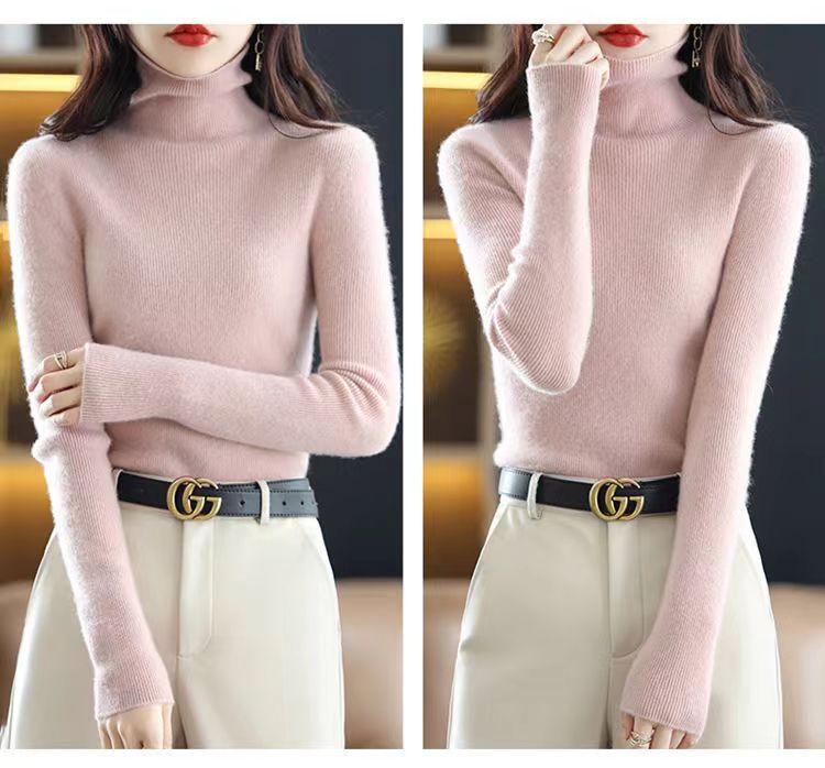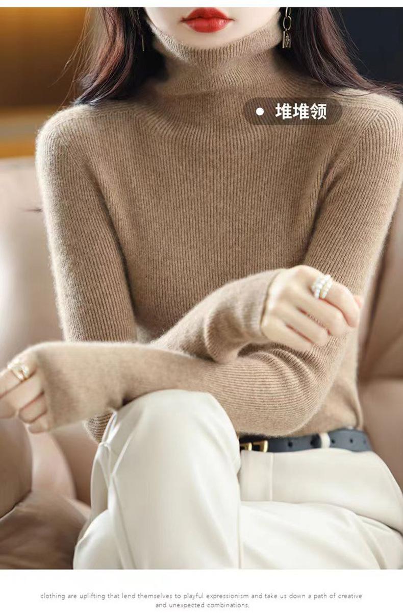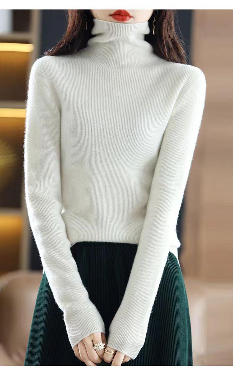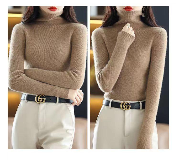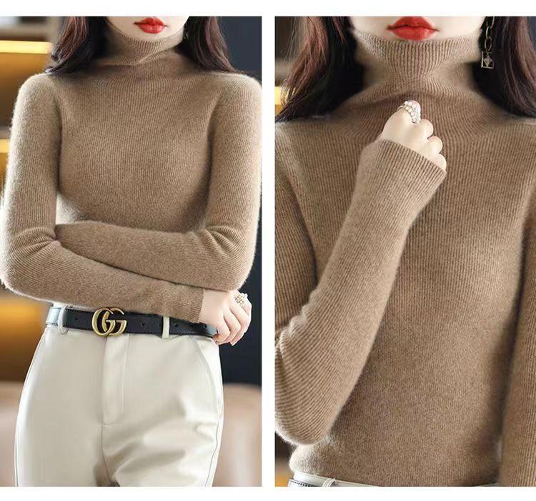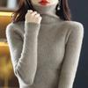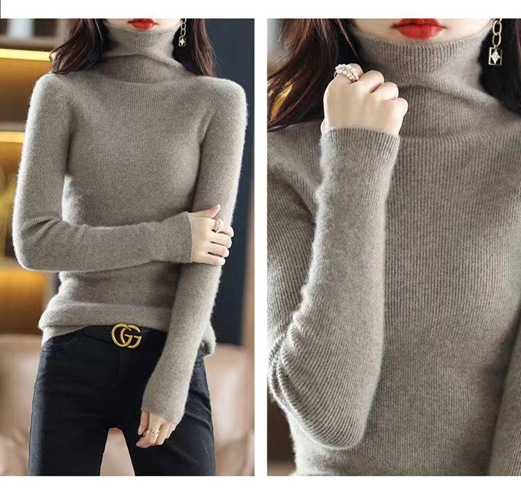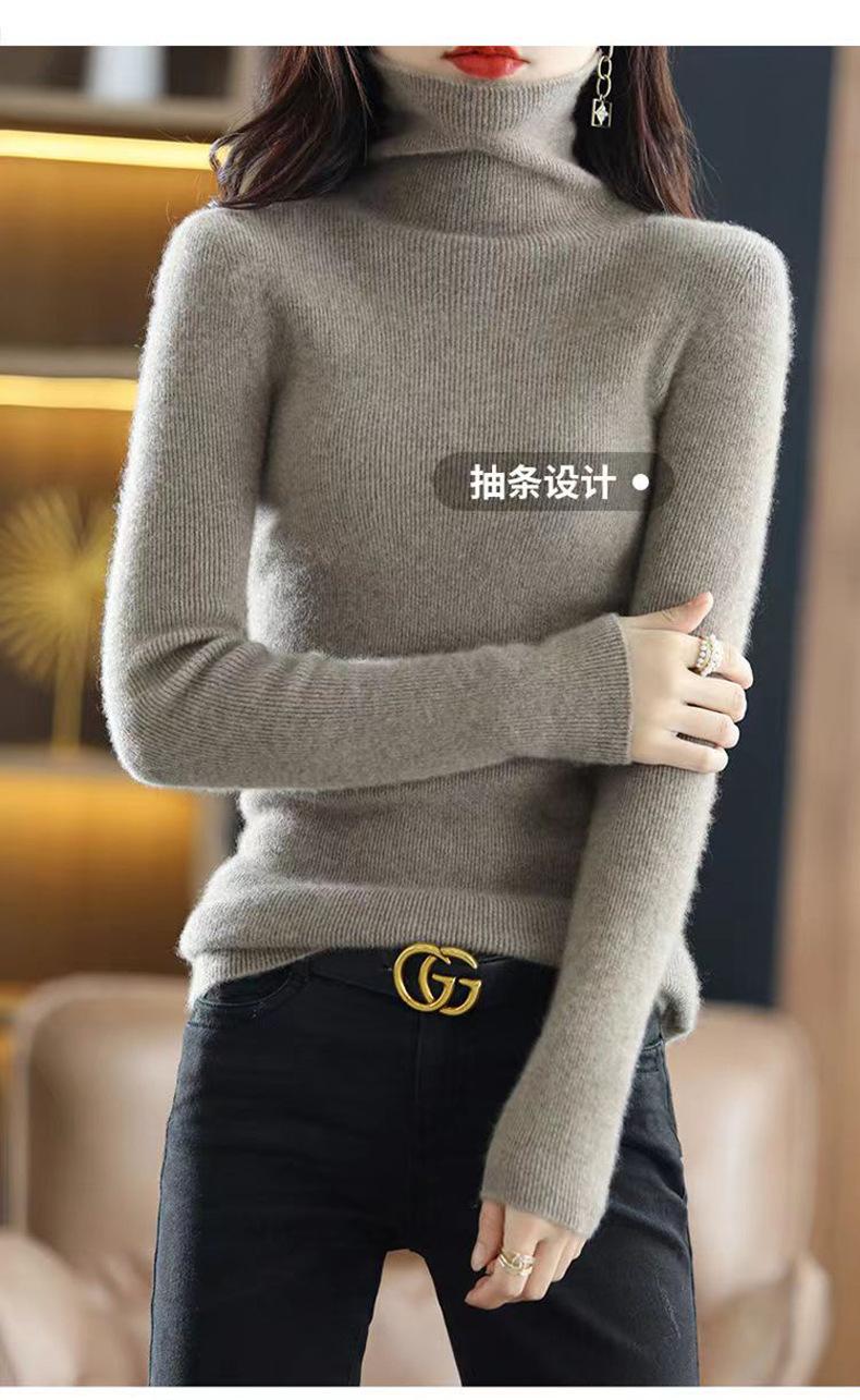 Gola de Pelo Tricotada de Lã Pronta para Vestir de Uma Linha Sem Costura Top Elegante Versátil de Manga Comprida Suéter Listrado Justo para Baixo para Mulheres