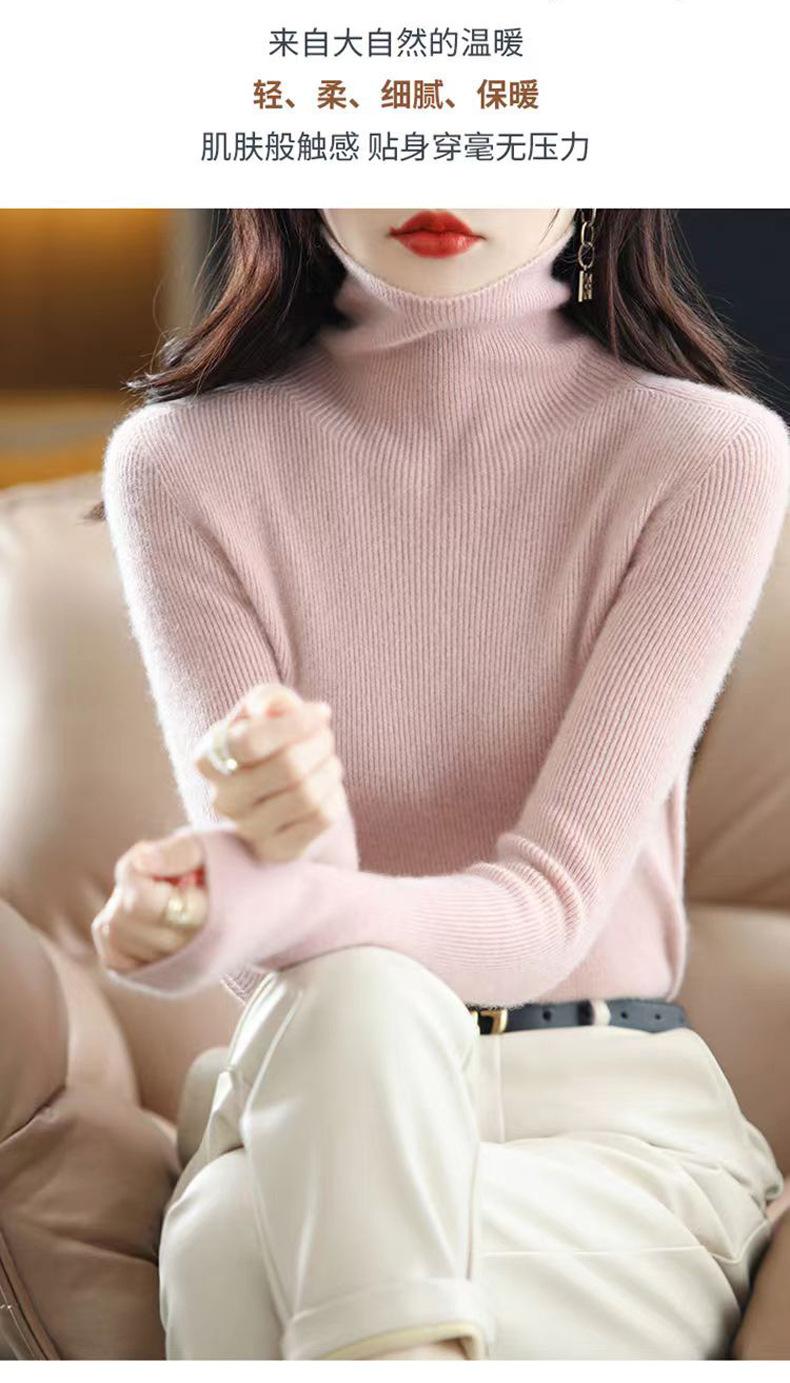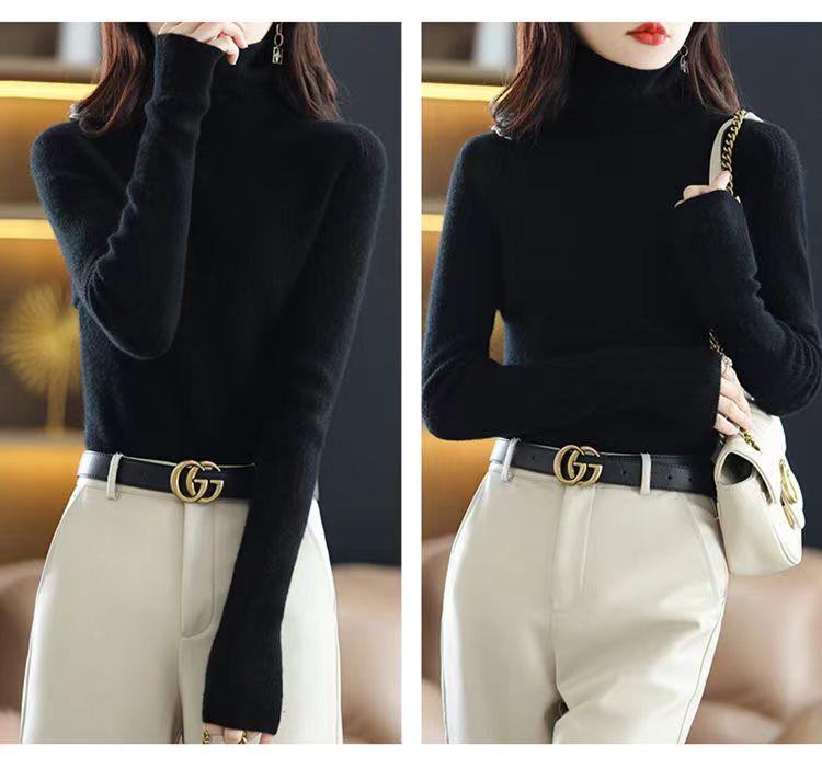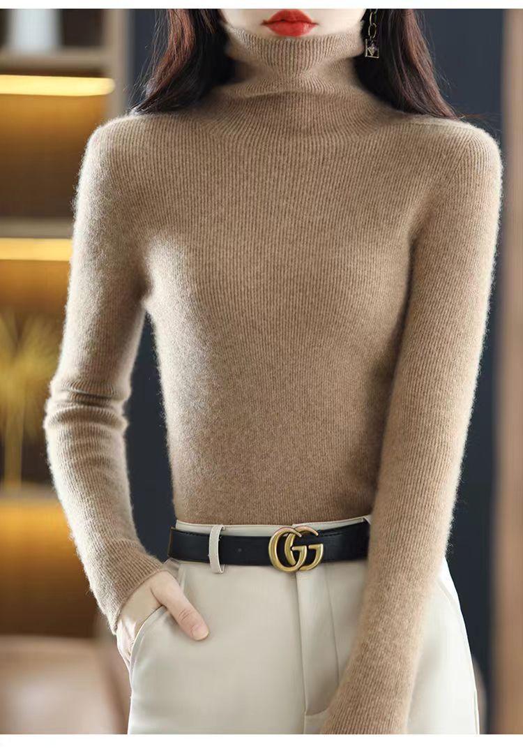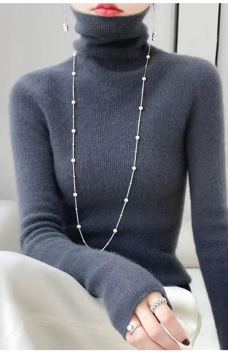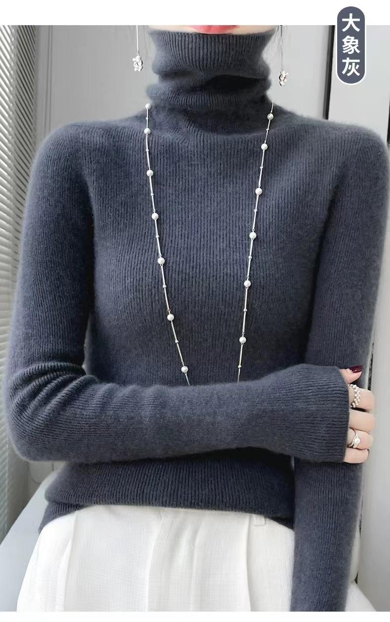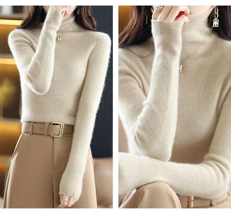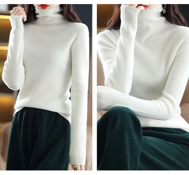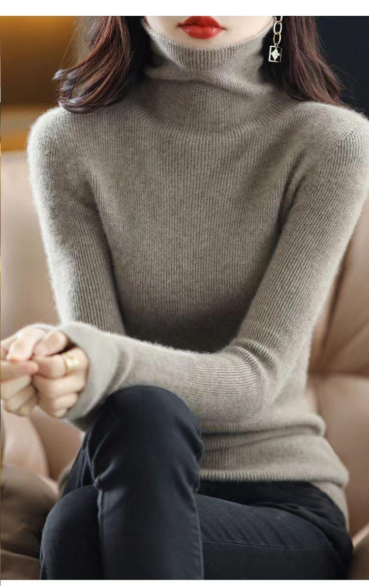 Gola de Pelo Tricotada de Lã Pronta para Vestir de Uma Linha Sem Costura Top Elegante Versátil de Manga Comprida Suéter Listrado Justo para Baixo para Mulheres