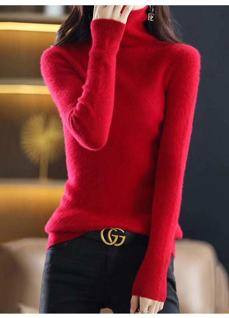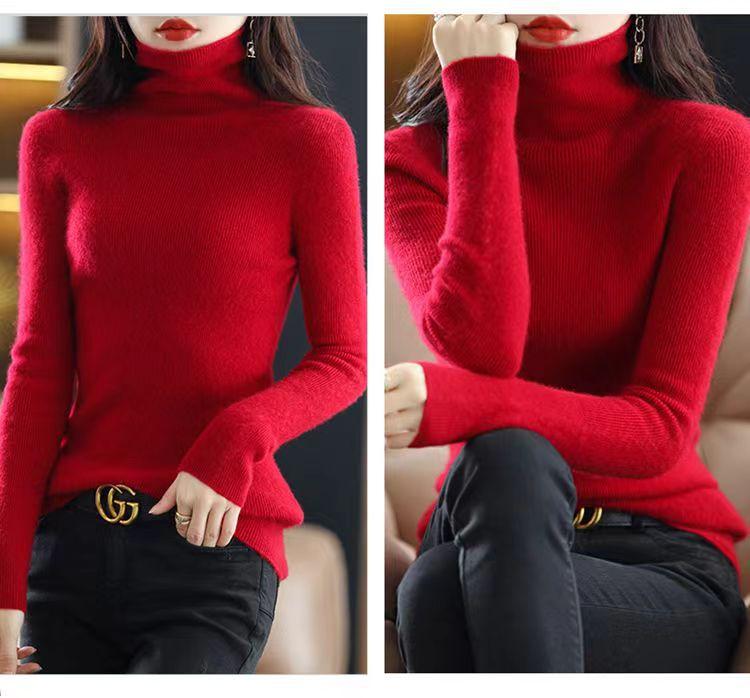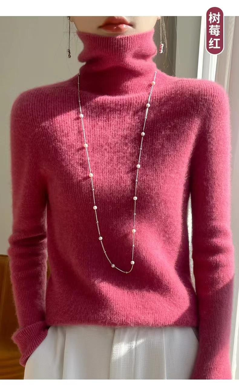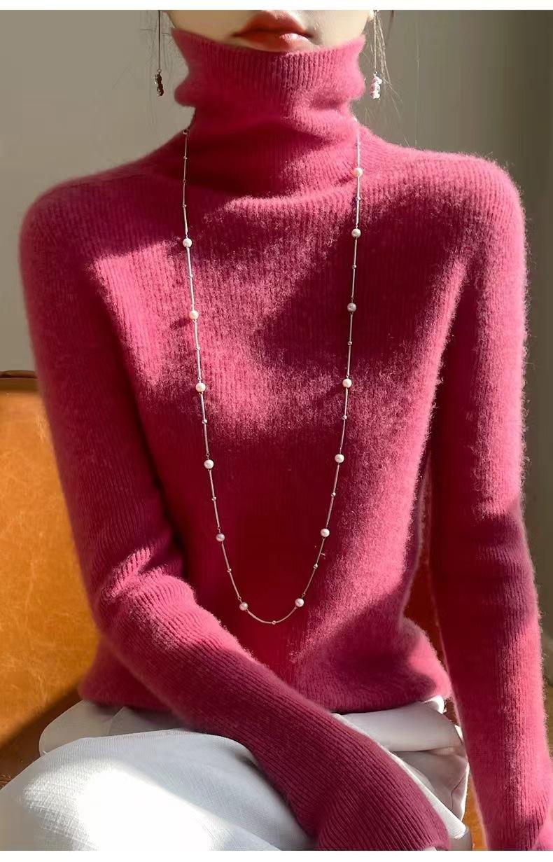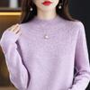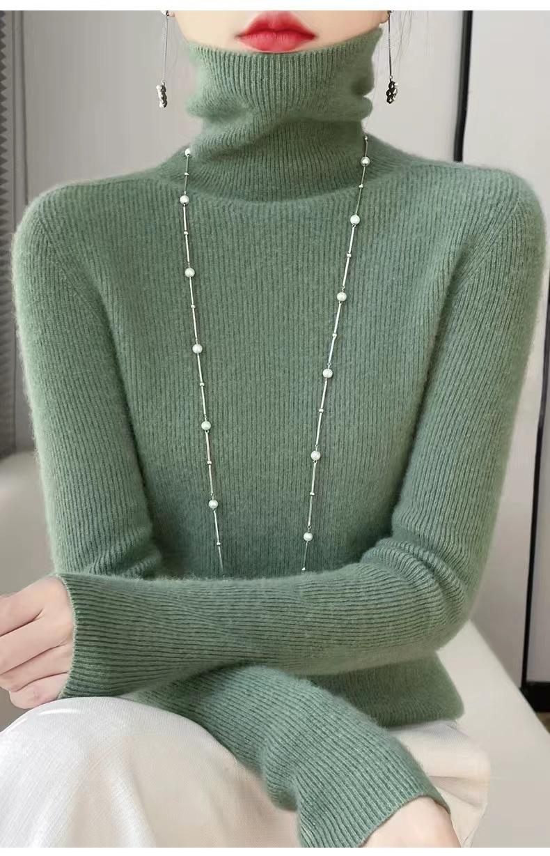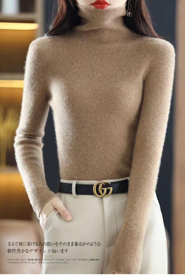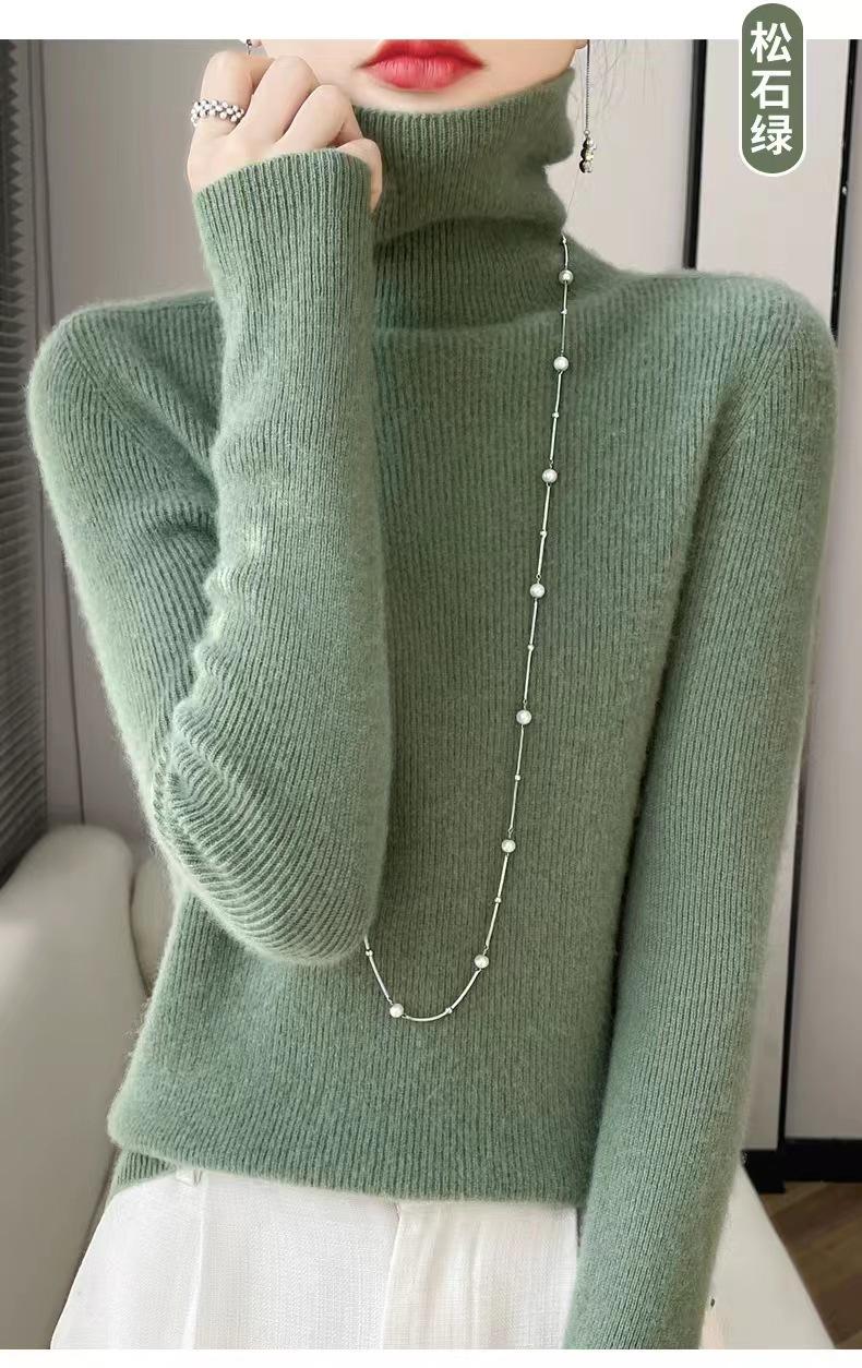 Gola de Pelo Tricotada de Lã Pronta para Vestir de Uma Linha Sem Costura Top Elegante Versátil de Manga Comprida Suéter Listrado Justo para Baixo para Mulheres
