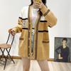Jaqueta Suéter Nova Primavera e Outono 2024 Feminina Color Block Solta Casaco Tricotado Estilo Coreano Doce e Delicado Jaqueta Pequena