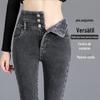 Jeans cortados slim-fit femininos, menina gordinha inverno forrado de lã cintura alta grossa jeans cortados de ajuste solto