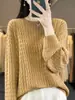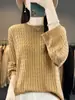 Outono e inverno nova lã camisola de malha camisola feminina crewneck pulôver xadrez camisola de malha solta base elegante cor sólida top