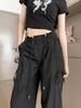 Macacão Preto Feminino Verão 2024 Novo Cintura Alta Solto Perna Larga Cordão Arco Secagem Rápida Calças Esportivas Americanas