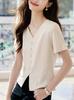 Temperamento Suave Textura All-match T-shirt 2024 Verão Novo Emagrecimento Elegante Decote Em V Elegante Chic All-match Top para Mulheres