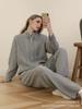 Conjunto Tricotado Solto Mais Vendido Estilo Europeu e Americano Transfronteiriço para Mulheres 2025 Outono e Inverno Novo Suéter Cardigã com Zíper + Calças de Perna Larga