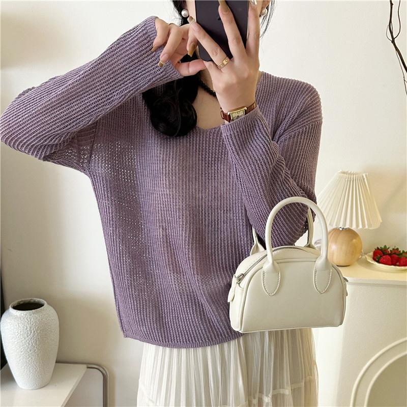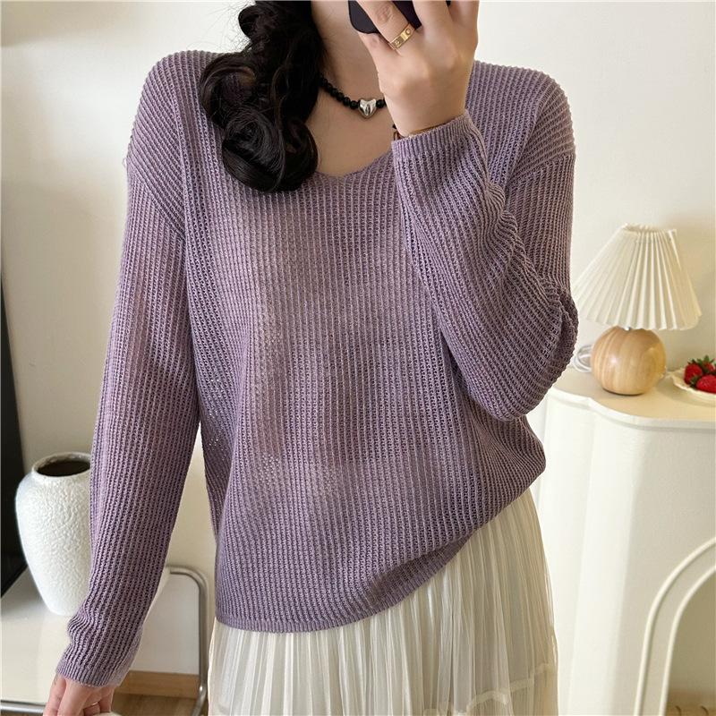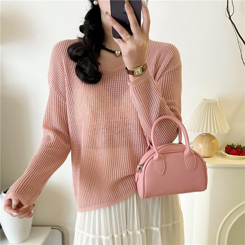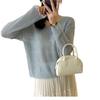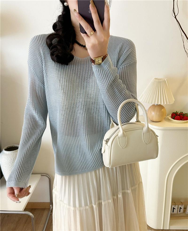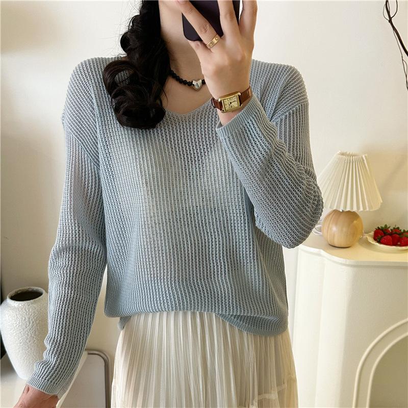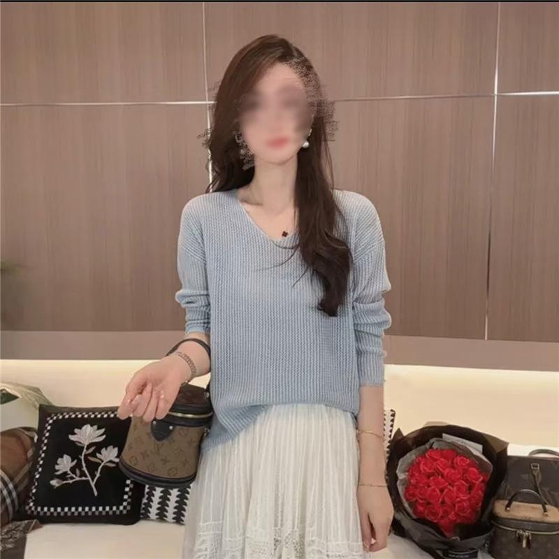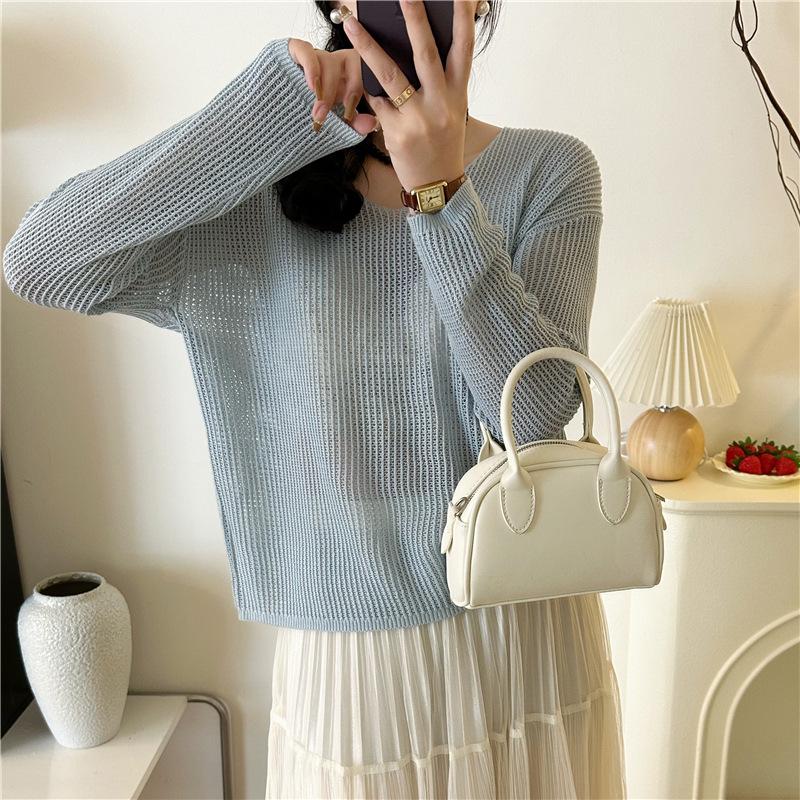 Roupas de Outono 2025 Nova Malharia Solta de Manga Comprida Blusa Feminina Vazada Estilo Coreano Popular Top Exterior de Início de Outono