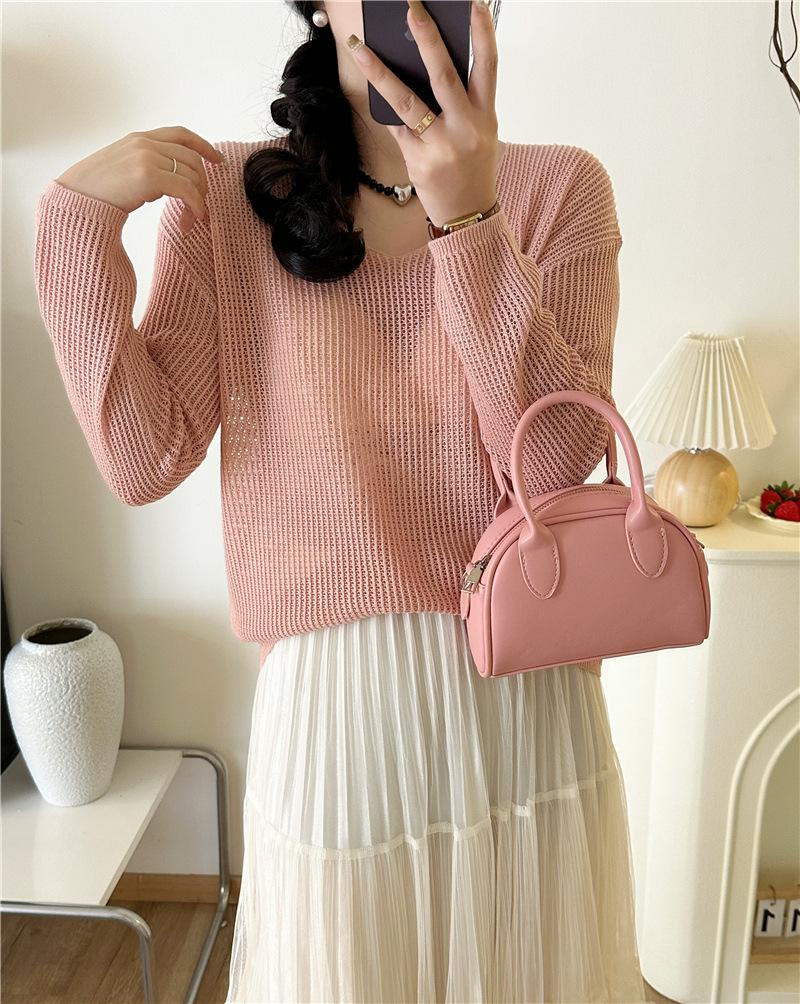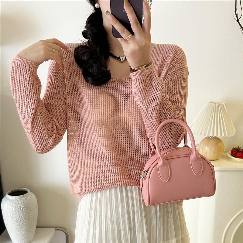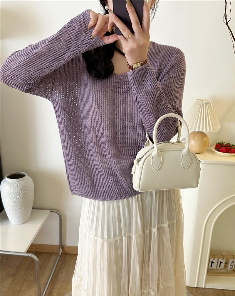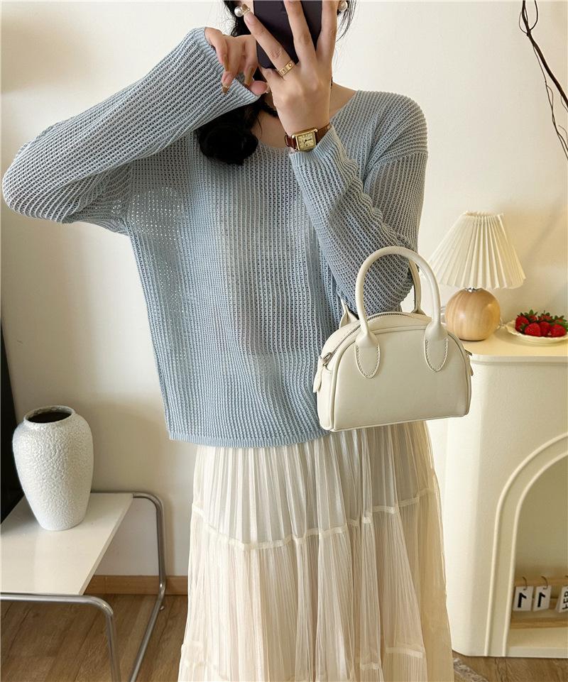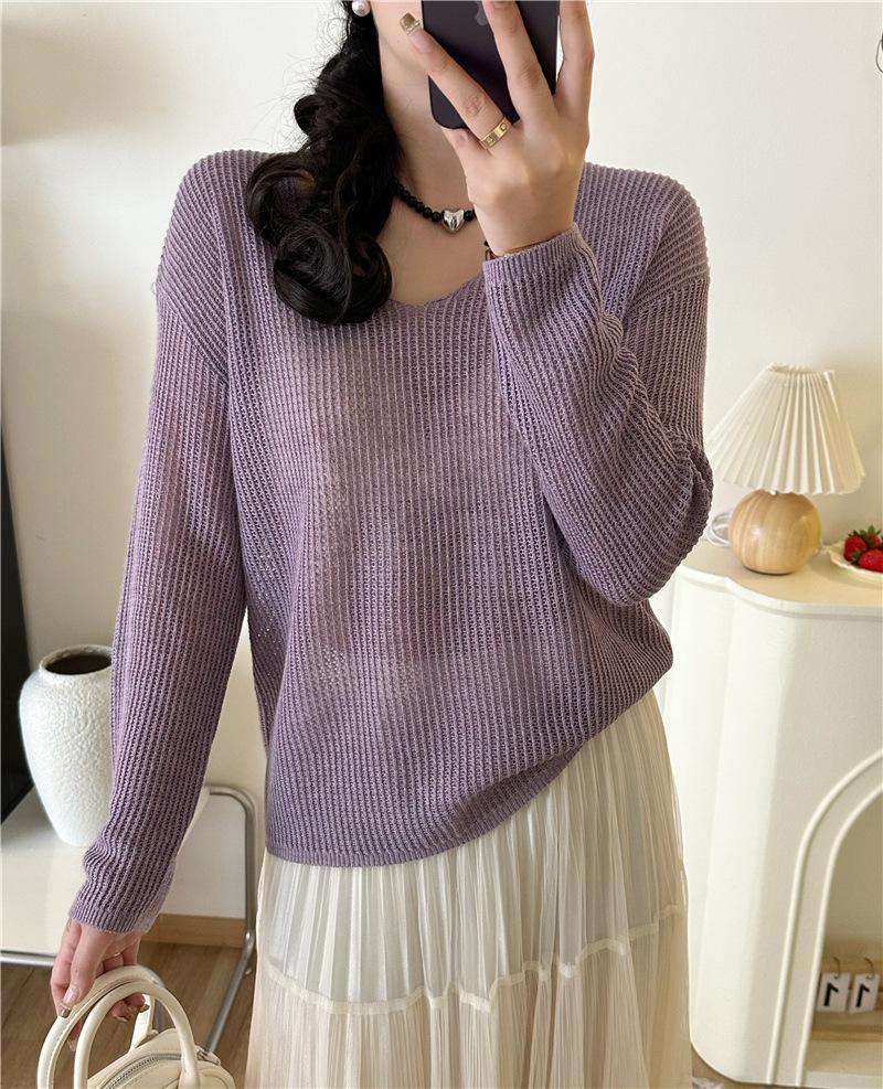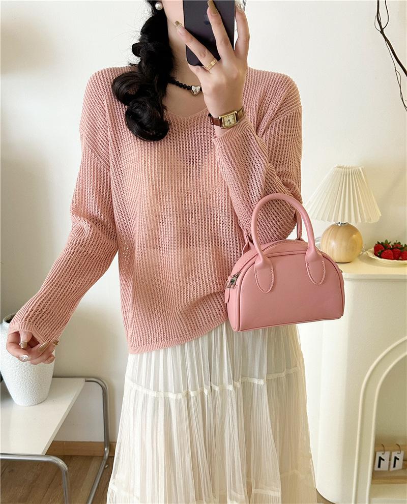 Roupas de Outono 2025 Nova Malharia Solta de Manga Comprida Blusa Feminina Vazada Estilo Coreano Popular Top Exterior de Início de Outono