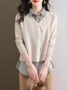 Camisa falsa de duas peças feminina outono vestindo camisa base 2024 novo estilo chique feminino top de malha