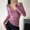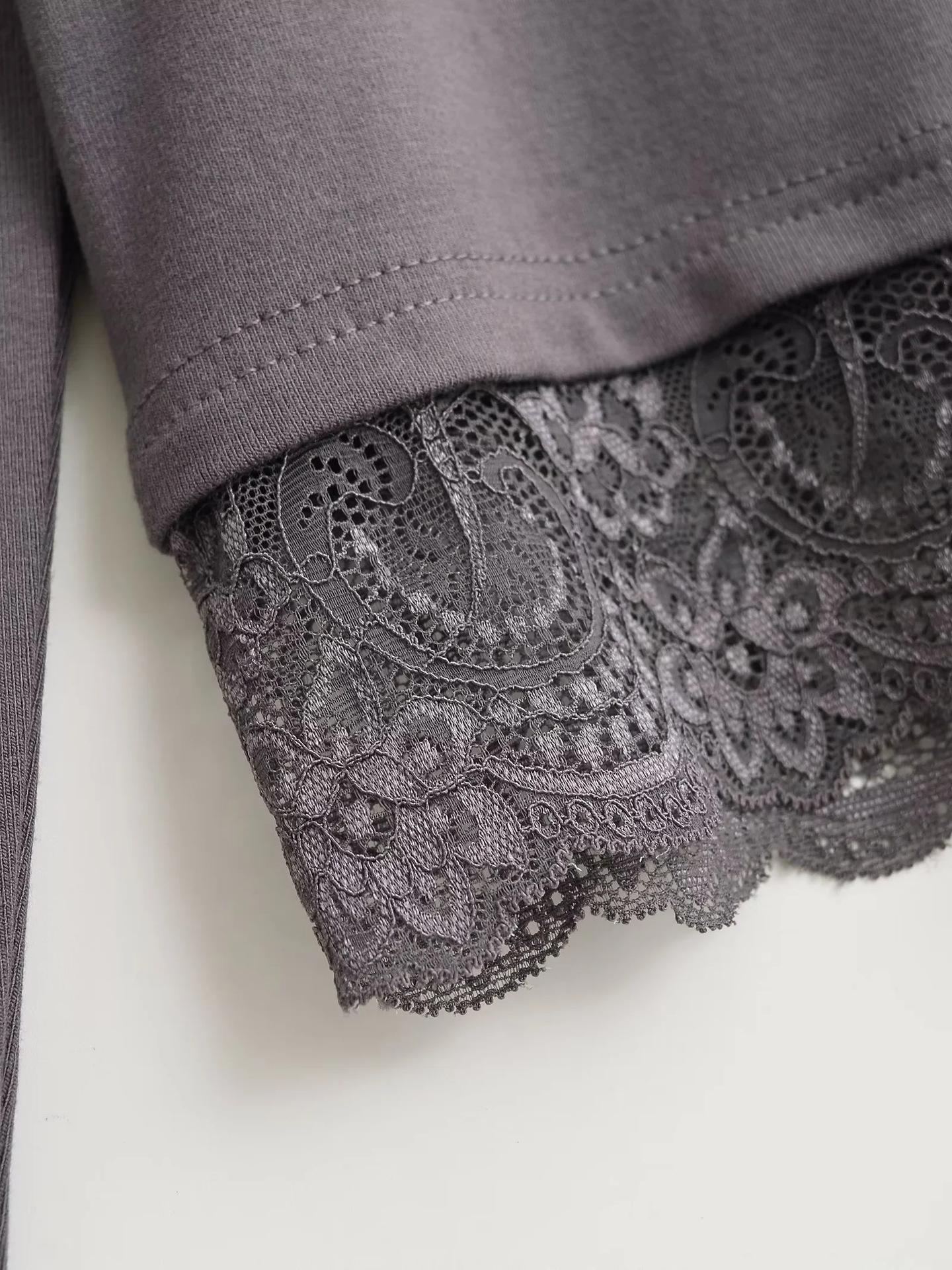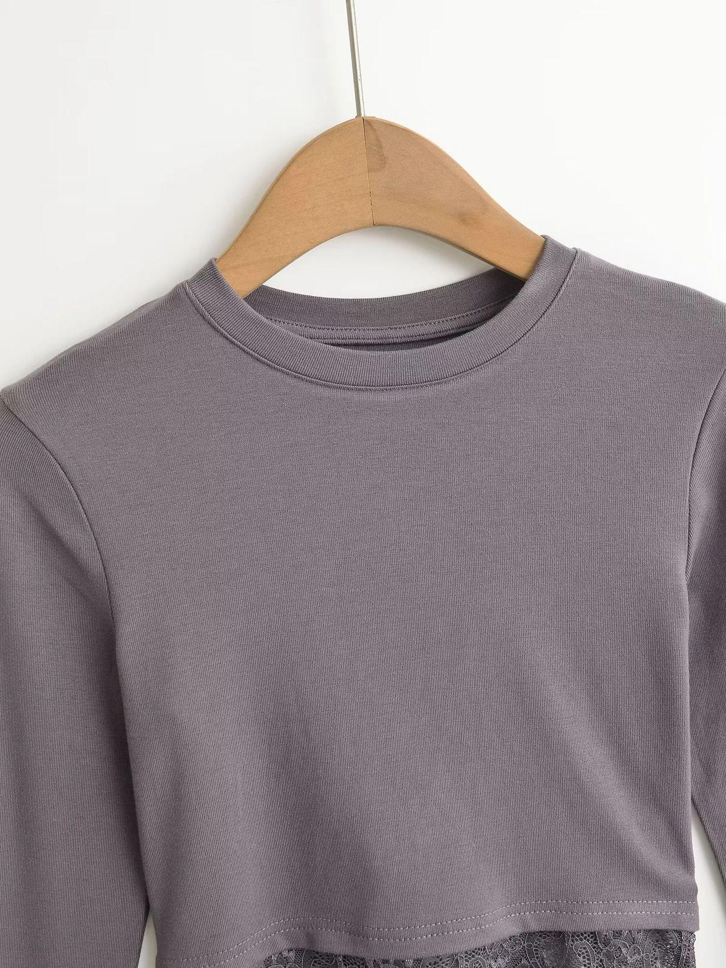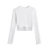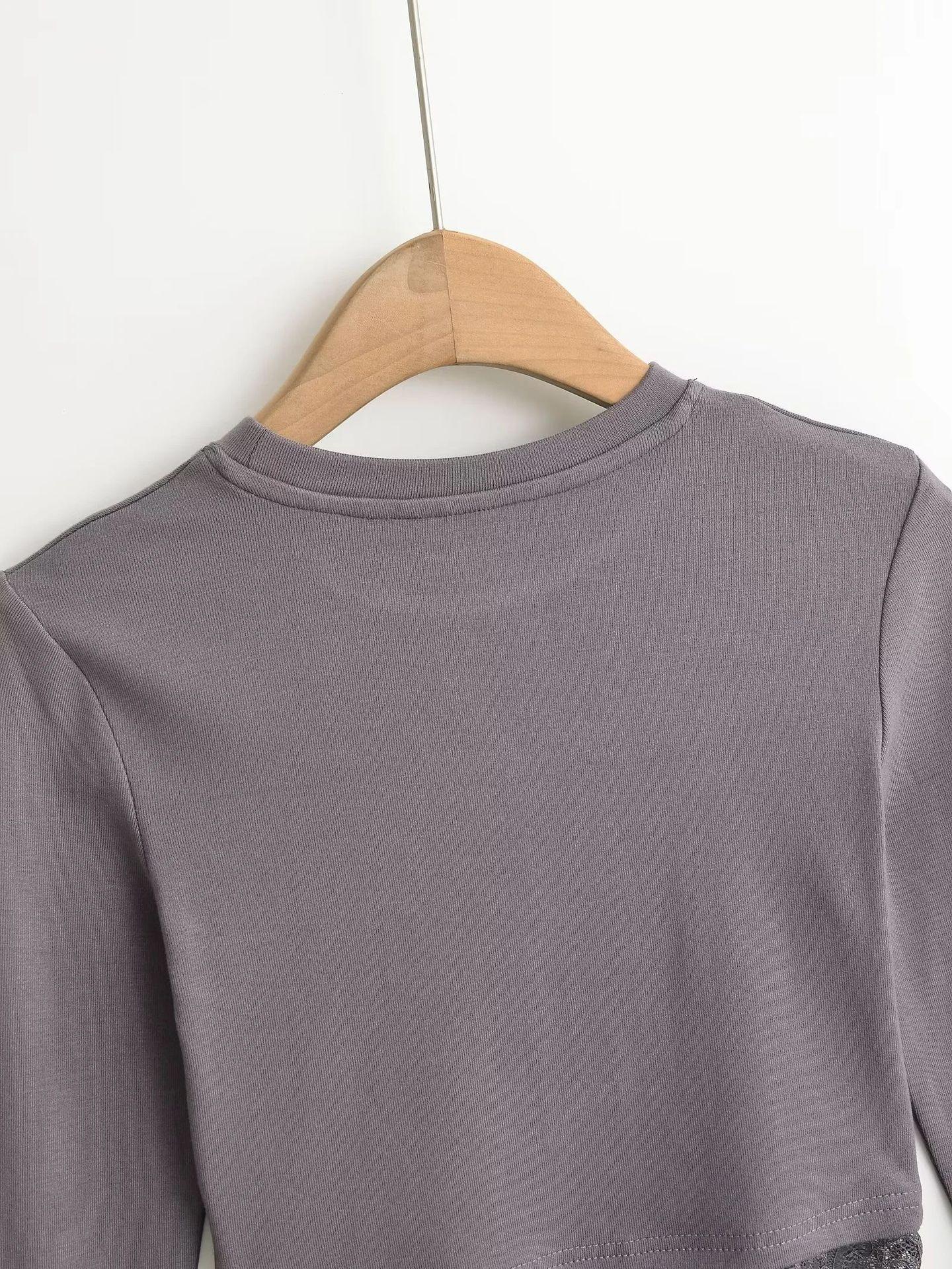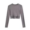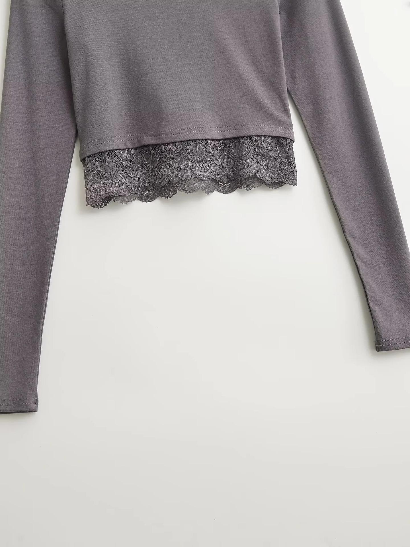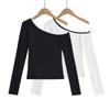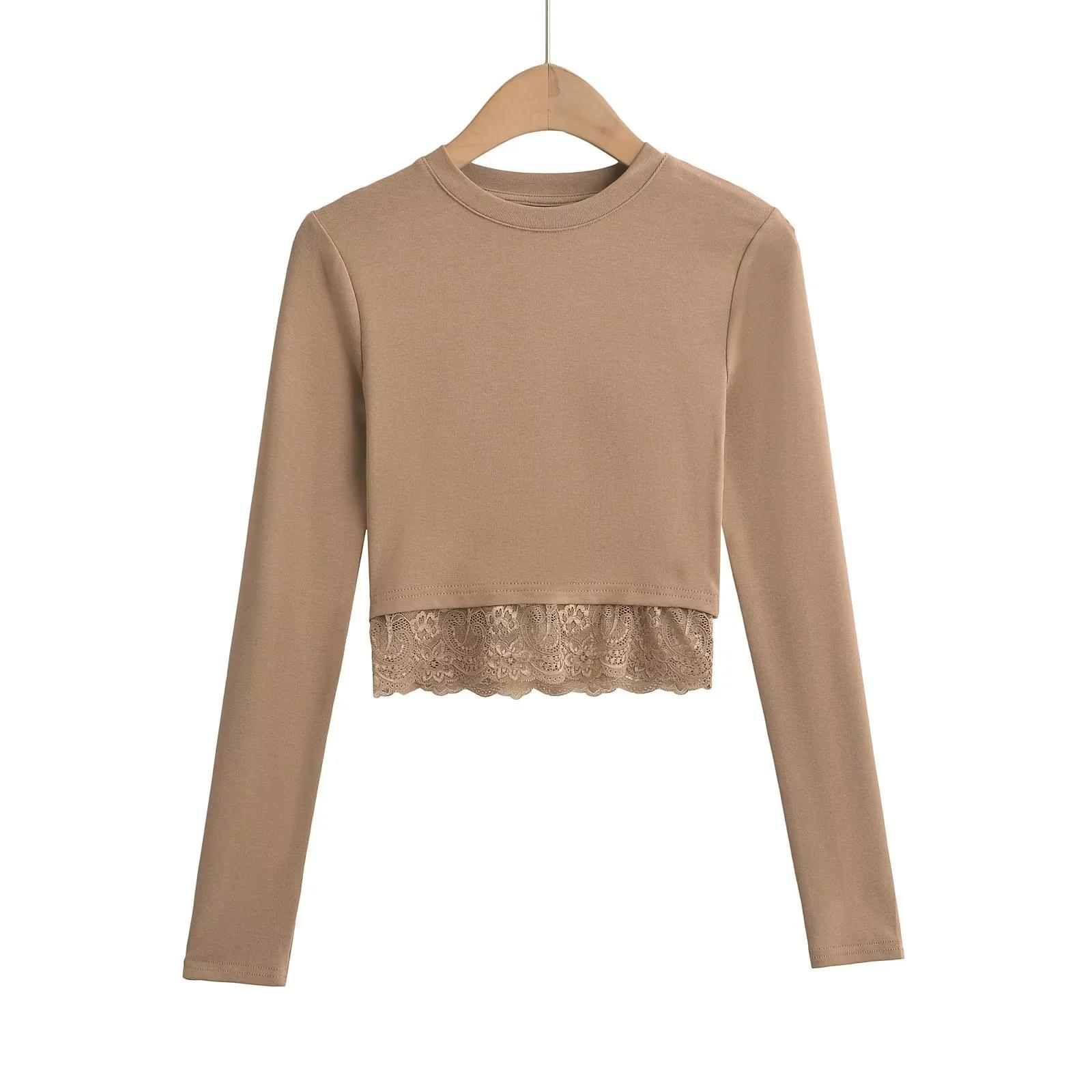 Outono e inverno New Spice Girls cintura alta manga comprida ombro camiseta feminina sexy renda costura slim-fit emagrecimento curto top