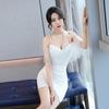 Puro desejo flor halter backless saia curta feminina Net Red Anchor apertado menina quente estilingue sexy baixo- decote bainha vestido