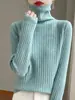 Novo Suéter de Caxemira Feminino Outono/Inverno 2024, Gola Média Alta Espessa, Pulôver Solto, Suéter Básico de Lã Cor Sólida