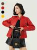 [Em Estoque, Pronto para Envio] Nova Jaqueta Curta Feminina de Couro PU Europeia e Americana Transfronteiriça com Gola Alta, Estilo Fino para Primavera e Outono, Jaqueta de Couro Vermelha