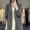 Outono e Inverno 2024 Novo Estilo Coreano Mulheres Grande Decote em V Manga Longa Cor Sólida Exterior Cardigã Trespassado