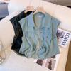 Colete Jeans Jaqueta Feminina Verão Solto Estilo Coreano Comprimento Médio All-match Outer Wear Colete Sem Mangas