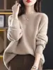 24 Outono e Inverno Suéter Feminino Gola Alta Gola Redonda Moda Solta Macia Cera Desgaste Externo Malha Base Interna Suéter de Lã Pura