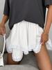 Saia Curta de Renda Emendada com Design Europeu e Americano de Verão 2025 para Mulheres Saia A-Line de Chiffon Branco de Camada Dupla com Cintura Alta para Mulheres