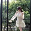 Primavera e Verão Novo Vestido Francês de Manga Longa para Gordinhas mm Cintura de Fada Doce Saia de Chiffon Saia Bolo com Babados
