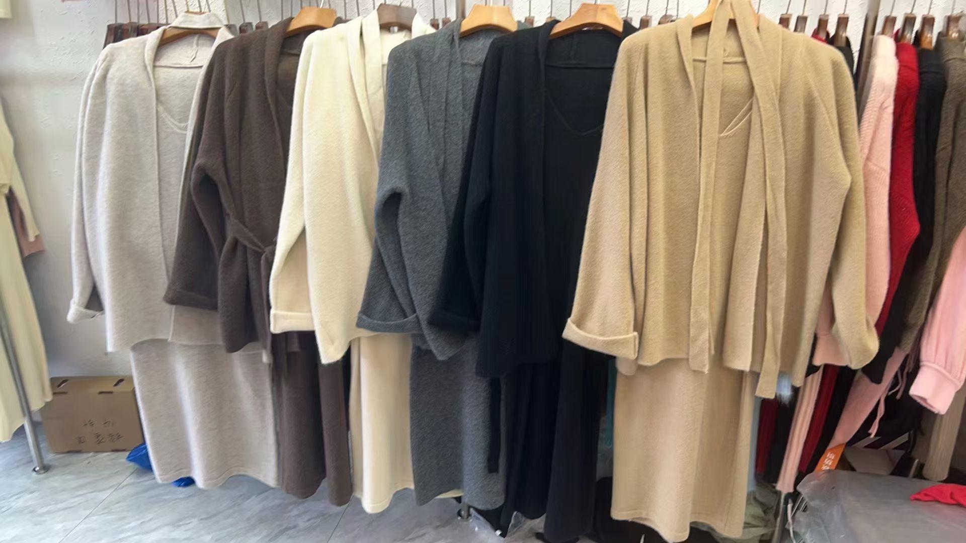 Comércio Exterior Transfronteiriço Roupas de Outono e Inverno Cardigan de Tricô da Moda Suéter Casaco Vestido Elegante Pequena Fragrância Conjunto de Duas Peças para Mulheres