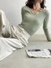 Mengzi sunseeker tira pequena v- pescoço macio cera interna malha base camisa feminina outono einverno novo design sentimento base x2307