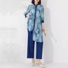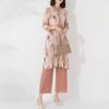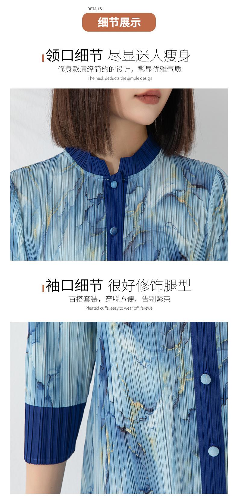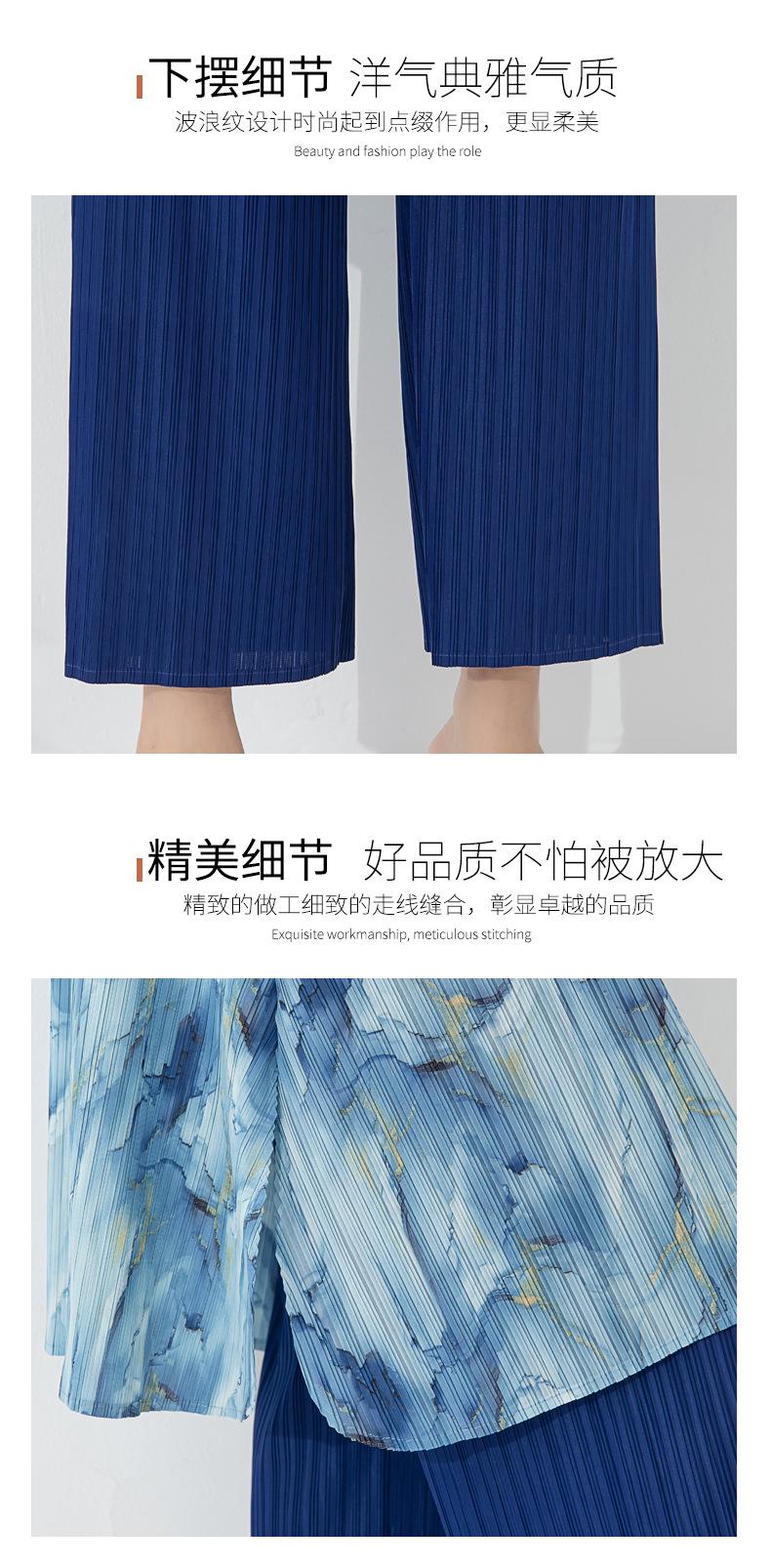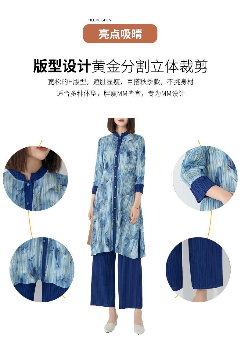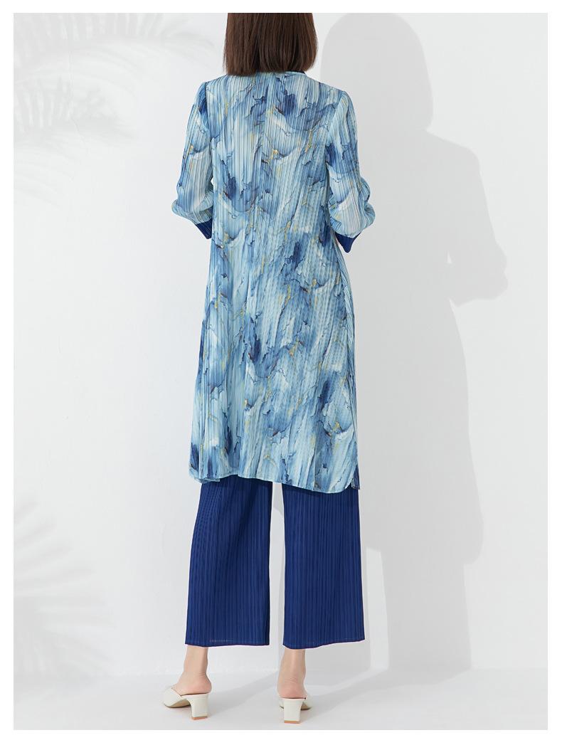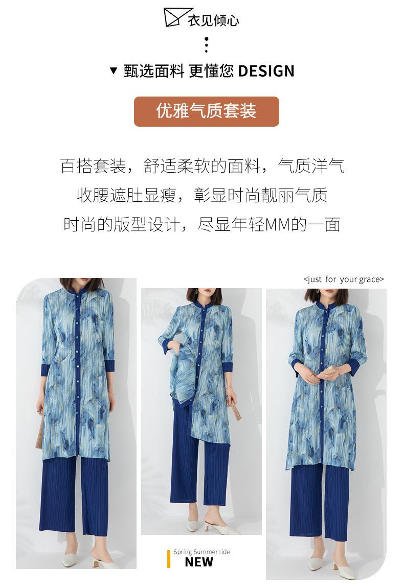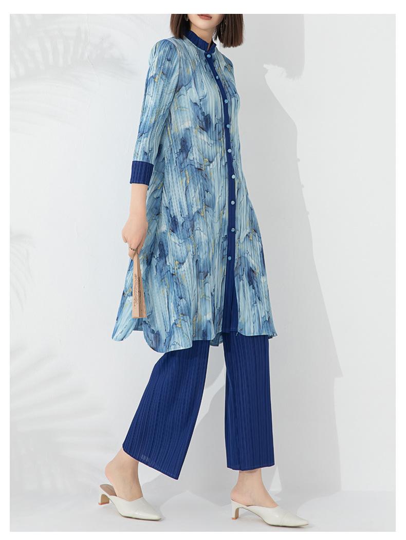 Plissado 2024 Outono Nova Moda Terno Feminino Impresso De Comprimento Médio Colarinho Reto Top Conjunto De Duas Peças