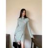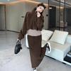Real Shot Outono e Inverno Novo Vestido Feminino Gola Vertical Zíper Suéter Saia Moda Terno Solto Quente Conjunto de Duas Peças