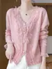 Nova camisola de lã para mulheres costura laço estilo Chanel início do outono camisola com decote em V cashmere cardigan top camisola de manga comprida