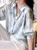 Camisa de pintura a tinta feminina 2024 outono novo intelectual camisa elegante moda temperamento comutador top de todos os jogos
