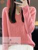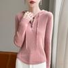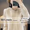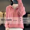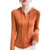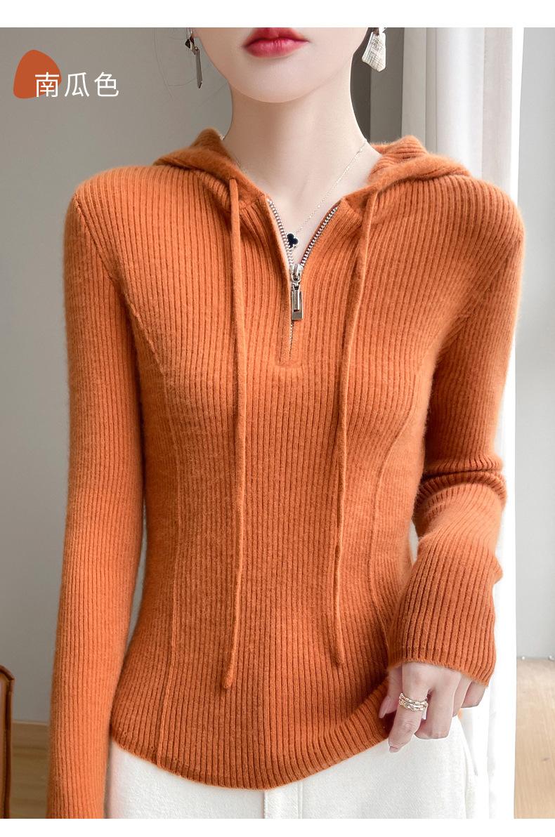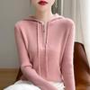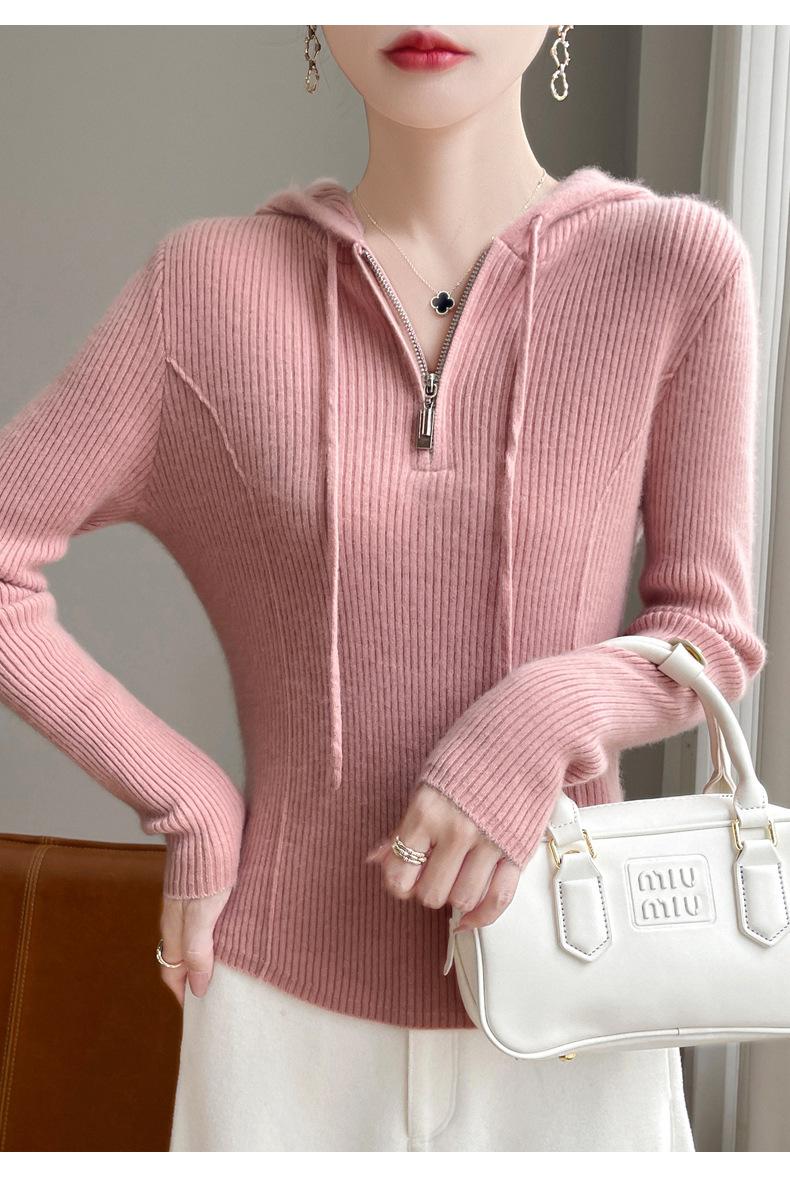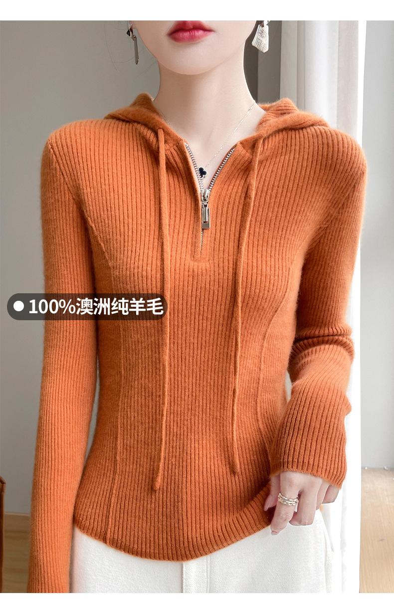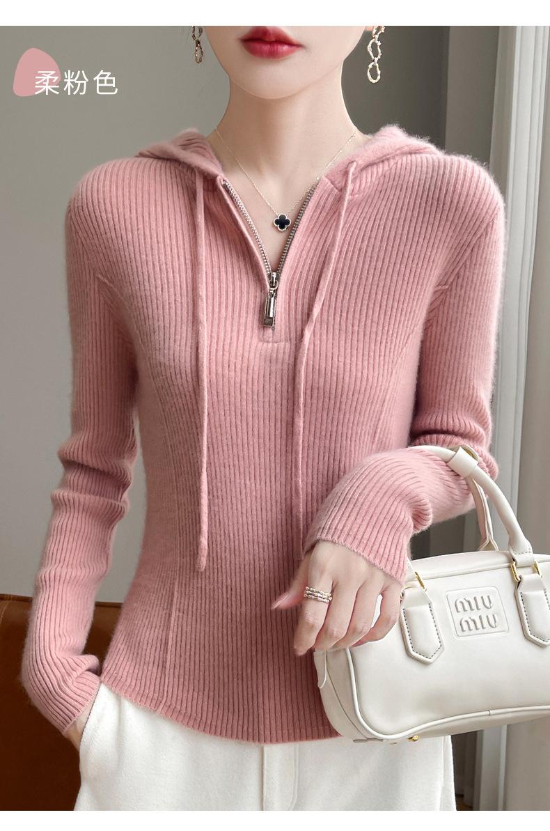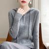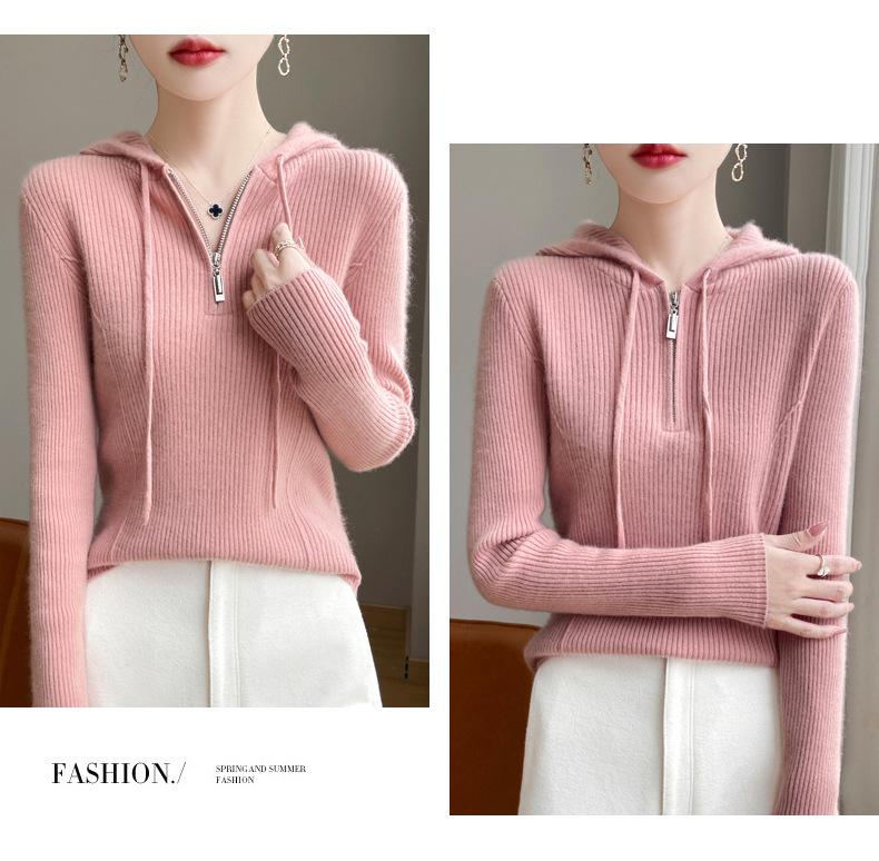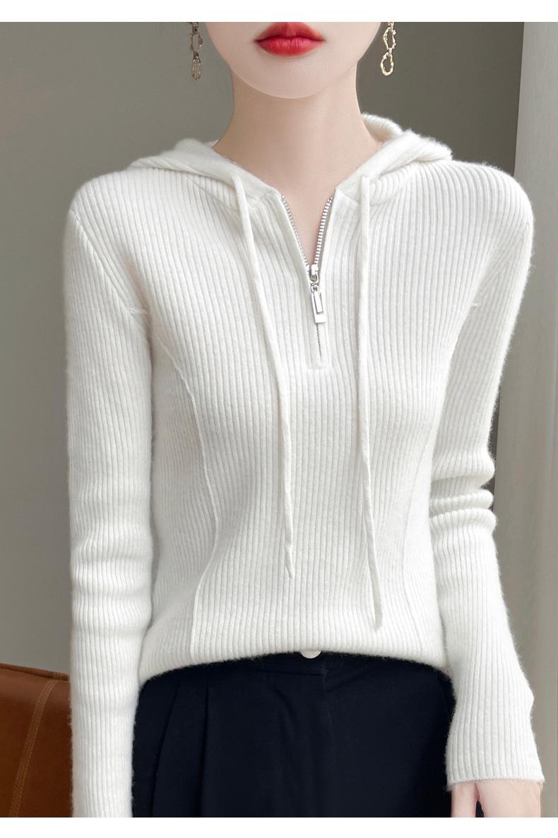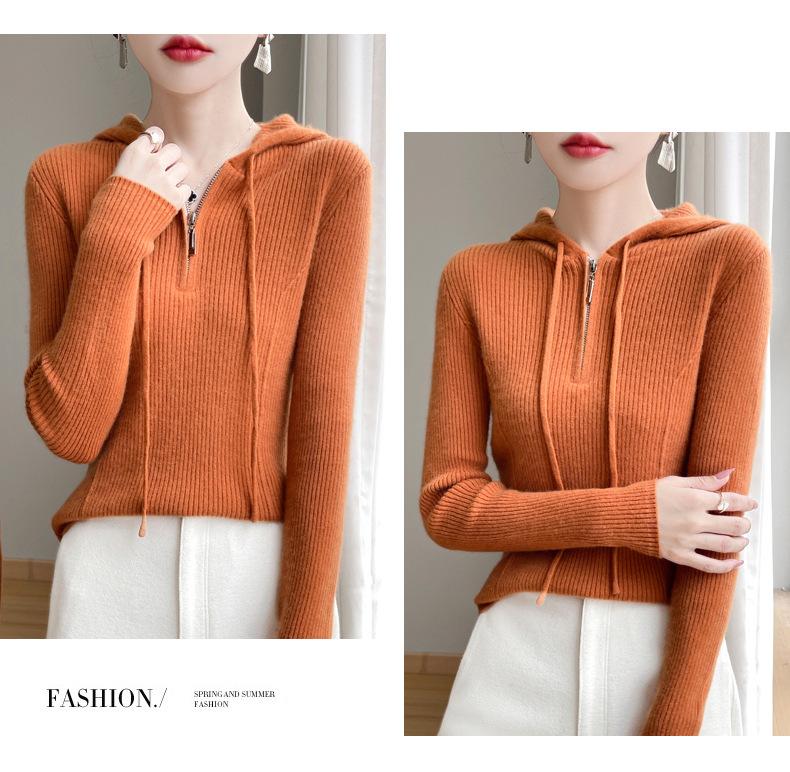 Suéter de Lã Feminino Moletom com Meio Zíper Cava Manga Longa com Capuz Solto Suéter com Cordão