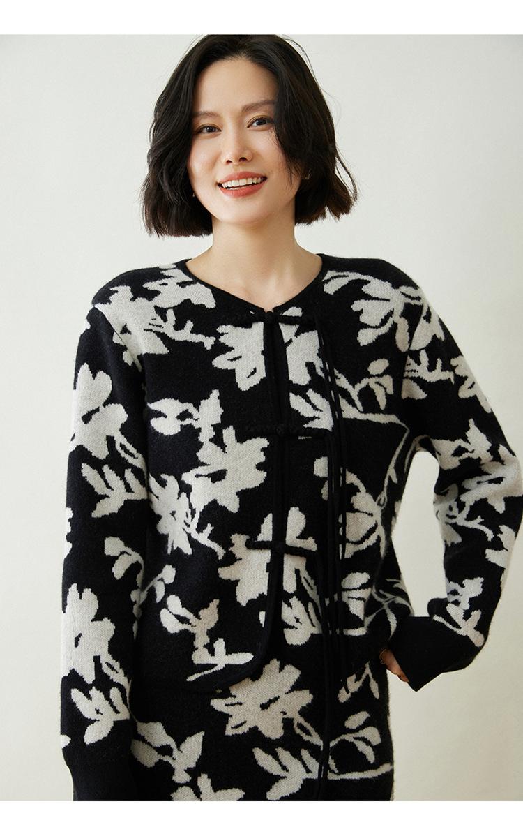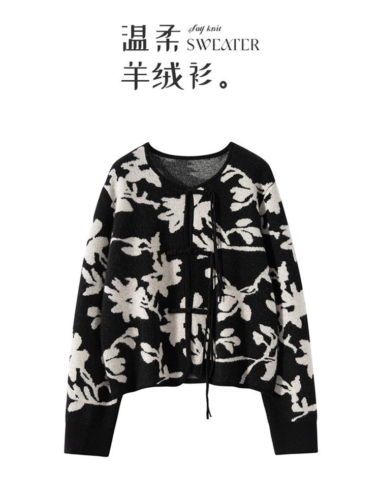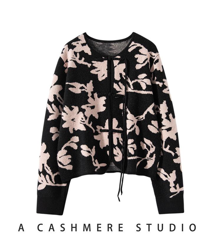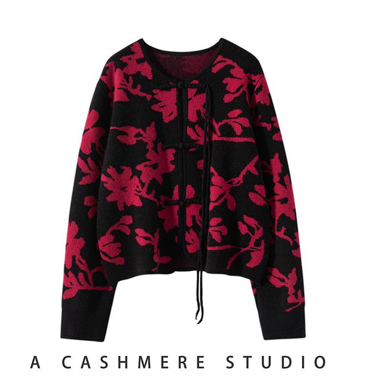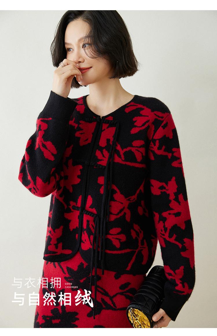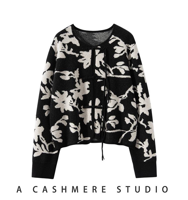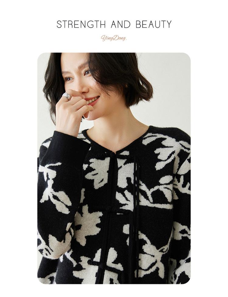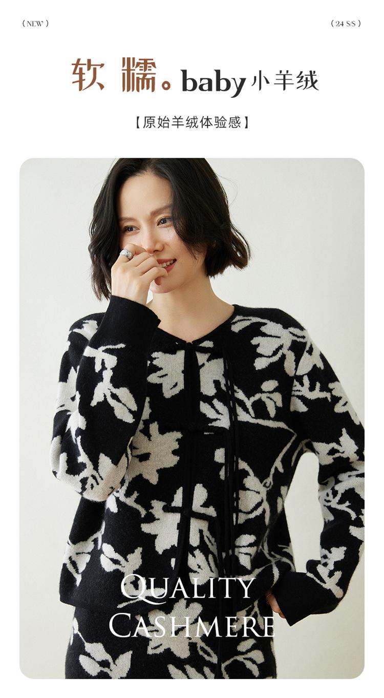 2024 Outono e Inverno Novo Suéter de Malha de Caxemira Suéter de Manga Comprida Feminino Cardigan Correspondência de Cores Top de Gola Redonda Slim All-match