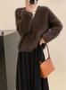 Início da primavera novo estilo preguiçoso feminino manga comprida fivela cardigã outono e inverno elegante casual decote em v desgaste externo macio suéter de malha cerosa