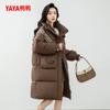 Jaqueta de Penas de Pato Feminina 2025 Outono e Inverno Nova Acima do Joelho Comprimento Médio Estilo Coreano Moda Cor Contrastante Gola Alta Capuz