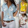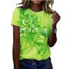 Moda transfronteiriça 2024 Europeia e Americana Cor Sólida Flora Decote em V Solto Plissado Solto Camiseta de Manga Curta Top Feminino
