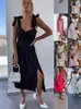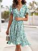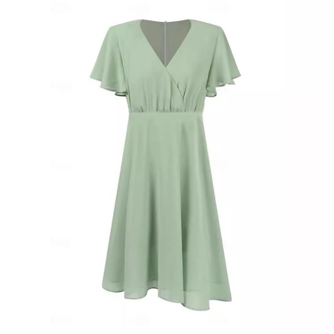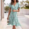 2024 Verão Nova Amazônia Europa e América Transfronteiriço Doce Estilo Fresco Vestido de Cintura Apertada com Decote em V Verde
