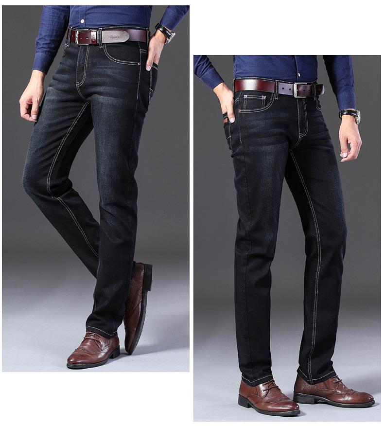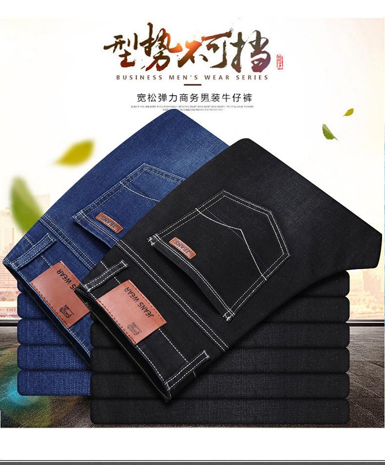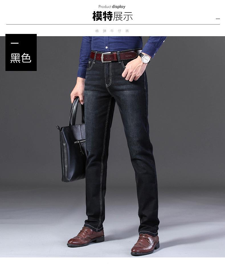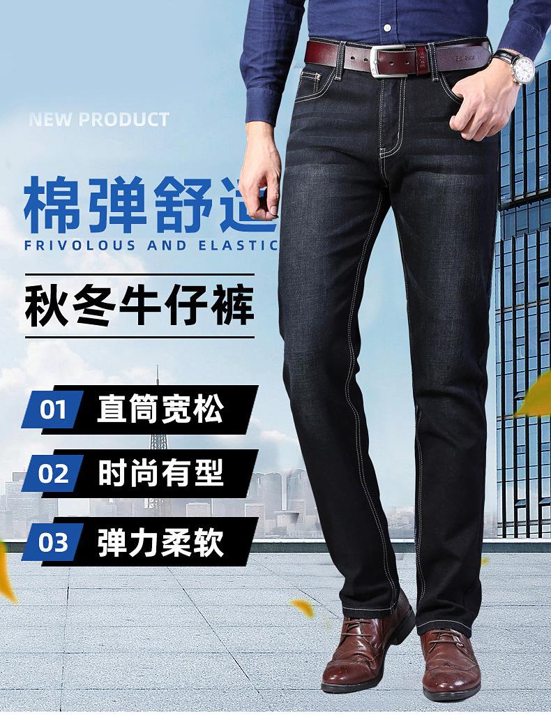 Outono e inverno jeans elásticos de meia-idade para homens grossos e magros em linha reta para homens negócios casuais para homens plus size calças compridas