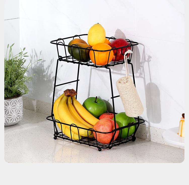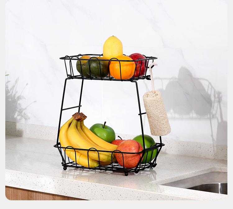 Rack de Armazenamento de Legumes de Cozinha Rack de Legumes Dupla Camada Bancada Cesto de Armazenamento de Frutas e Legumes Rack de Armazenamento de Lanches Cesto Cesto de Frutas de Ferro