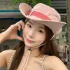 Chapéu de Caminhada ao Ar Livre Chapéu de Pescador com Cordão Chapéu de Verão Outono Feminino Aba Larga Rosto Pequeno Proteção Solar Chapéu de Cowboy Ocidental