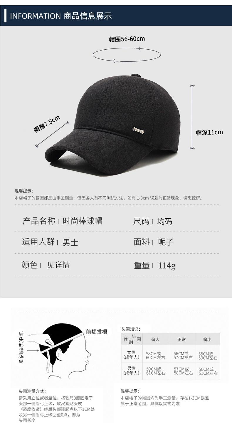 Inverno Novo Coreano Proteção Auricular Boné de Beisebol Homens de Meia-idade e Idosos Boné Ao Ar Livre Lã Engrossada Boné de Algodão Quente