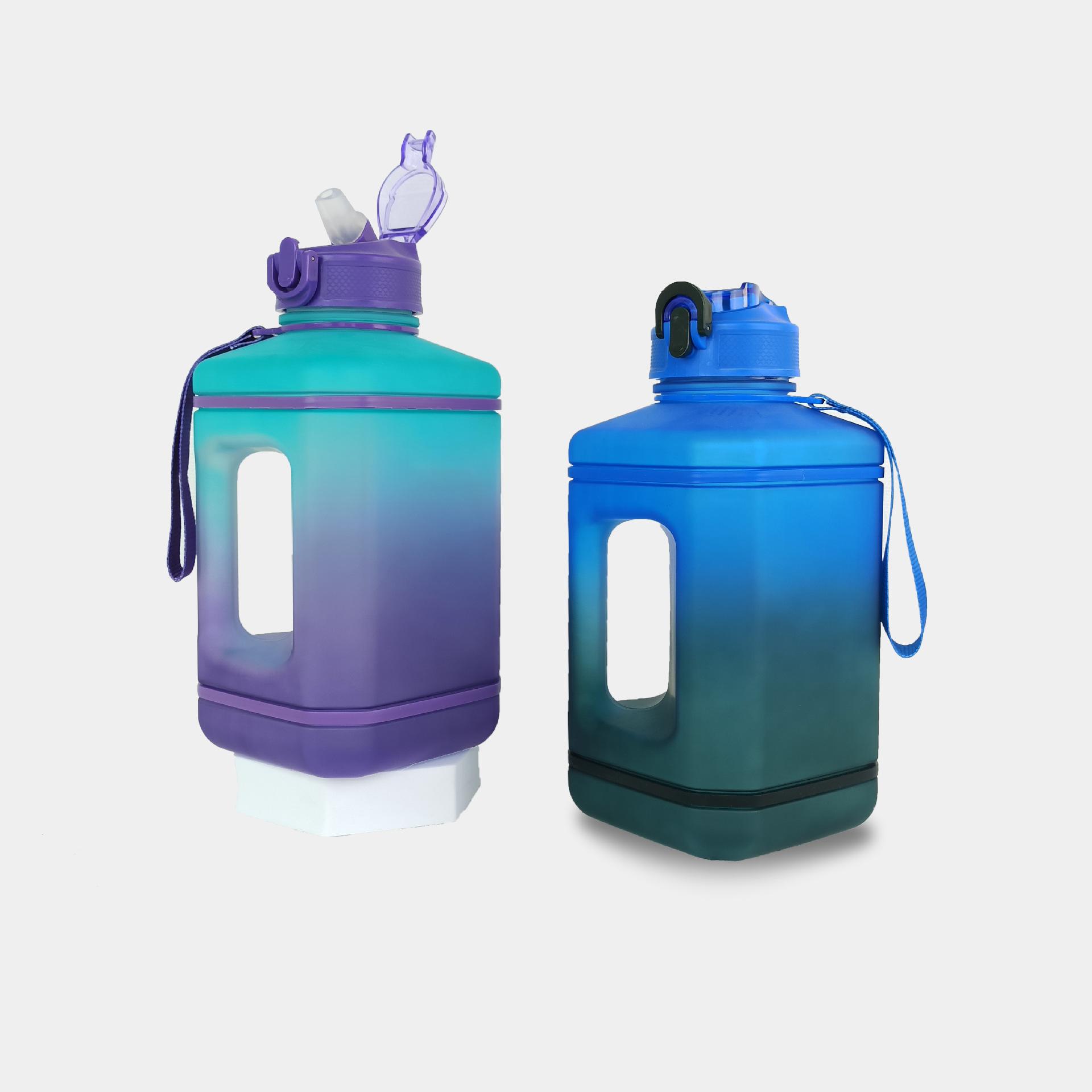 Compre Chaleira de plástico gradiente de 2000 ml, chaleira quadrada Petg, grande capacidade, esportes ao ar livre, capa protetora, alça no atacado no Joom.pro