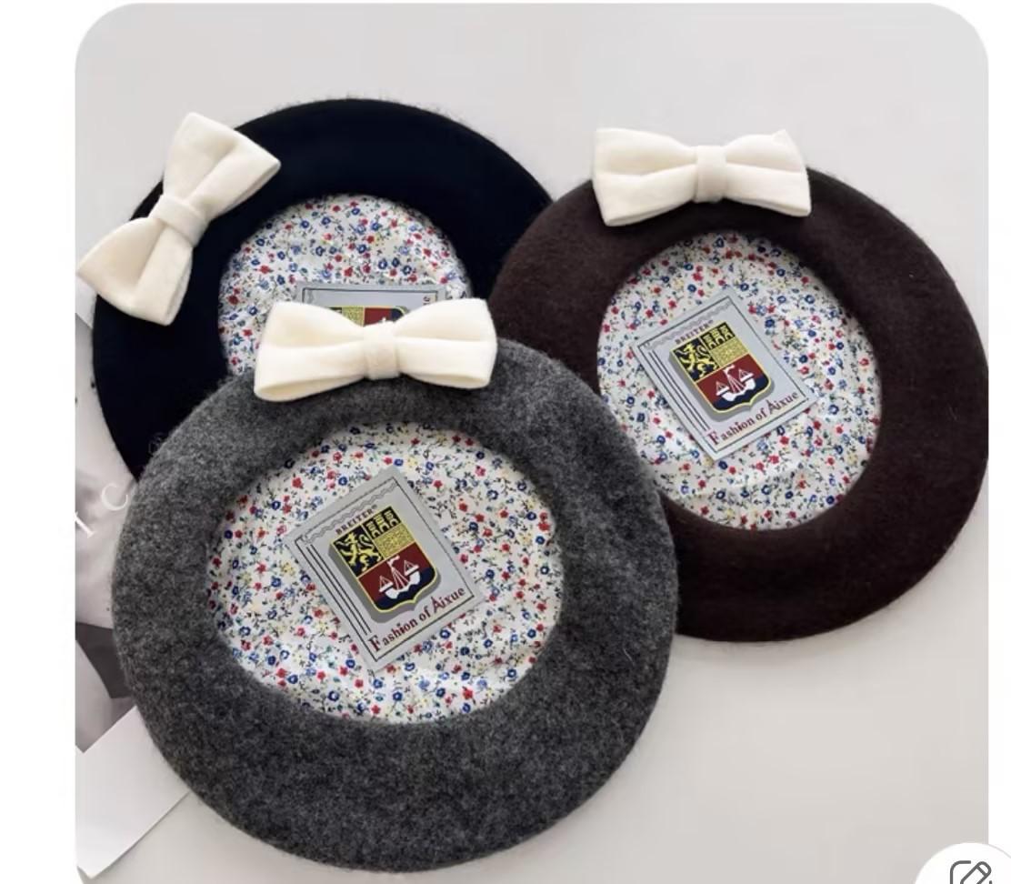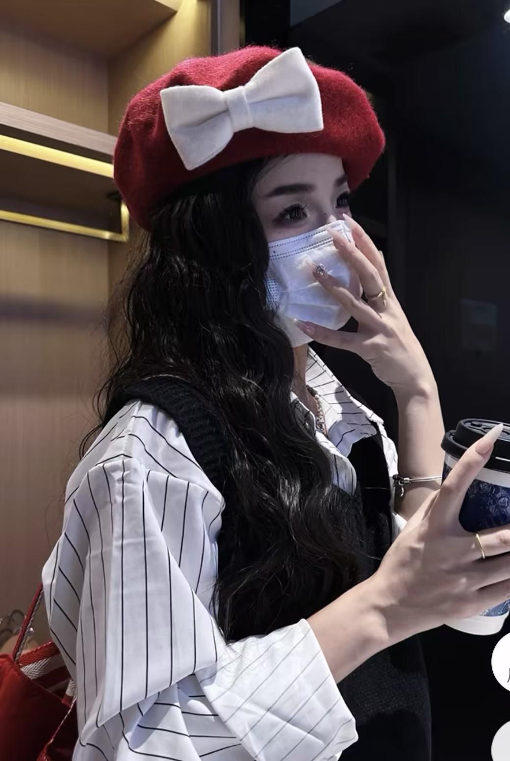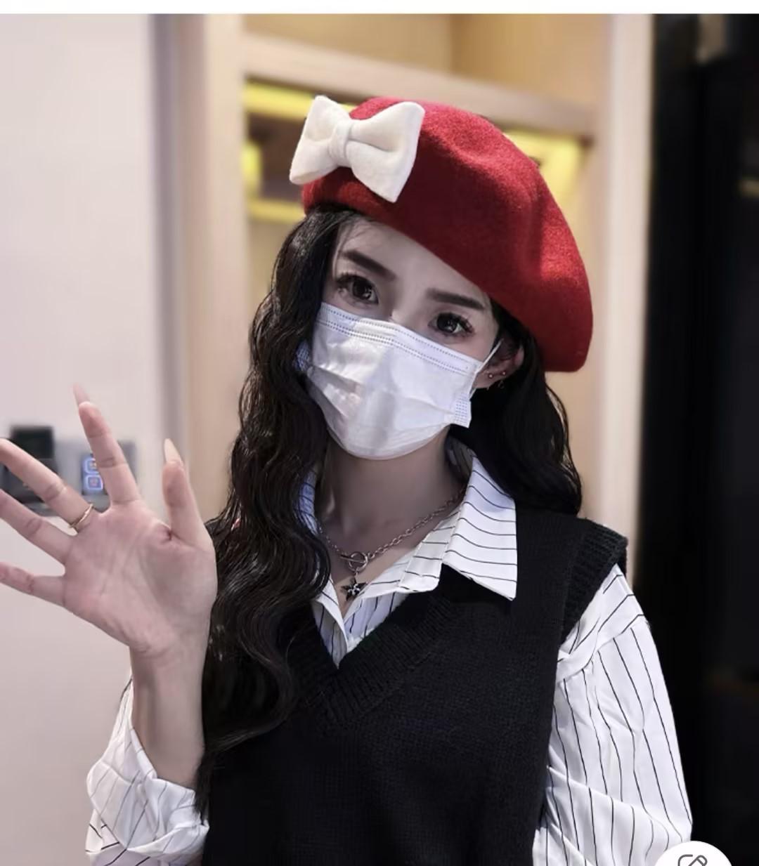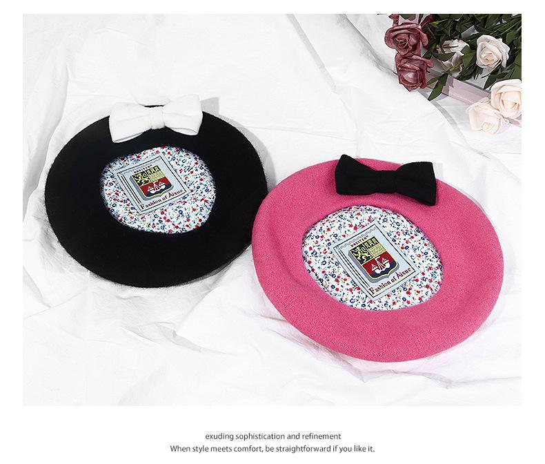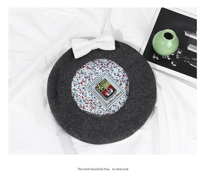 Chapéu de Inverno Novo Estilo Laço Chapéu de Pintor Coreano Casual Versátil Boina Quente e à Prova de Frio Chapéu Boina para Mulheres