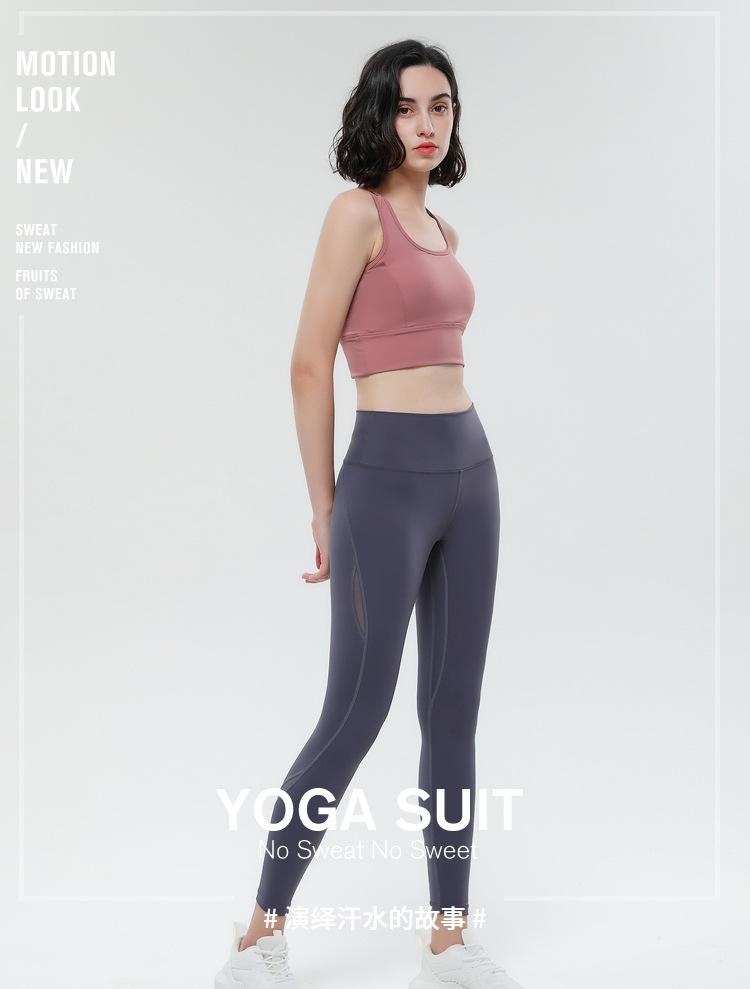 Calças de ioga transfronteiriças Roupas femininas de cintura alta abdominal apertada elástica para corrida Roupas de ginástica Pêssego Roupa externa para levantamento de quadril Europa e América