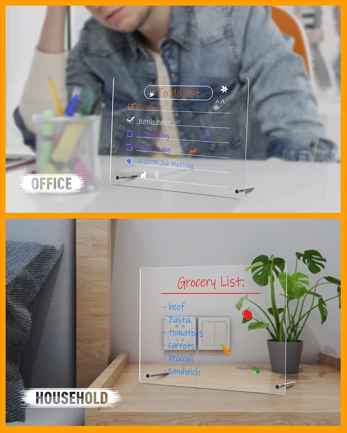 Compre Placa de limpeza a seco acrílica Lista de tarefas Desktop Notas claras Quadro de notas de mesa Quadro branco de mesa com suporte no atacado no Joom.pro