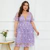 Vestido Curto Europeu e Americano da Amazon com Decote V, Bordado Floral em Renda, Design Estiloso e Estilo Elegante de Vestido de Banquete