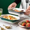 Prato de arroz assado com queijo Prato de cozimento Prato fundo de cerâmica Prato doméstico Prato quadrado longo binaural Prato quadrado de molde de forno Prato quadrado