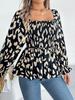 Amazon Roupas Femininas Transfronteiriças 2025 Outono e Inverno Novo Europeu e Americano Casual Gola Quadrada Fungo Estampa de Leopardo Camisa de Chiffon de Manga Comprida para Mulheres